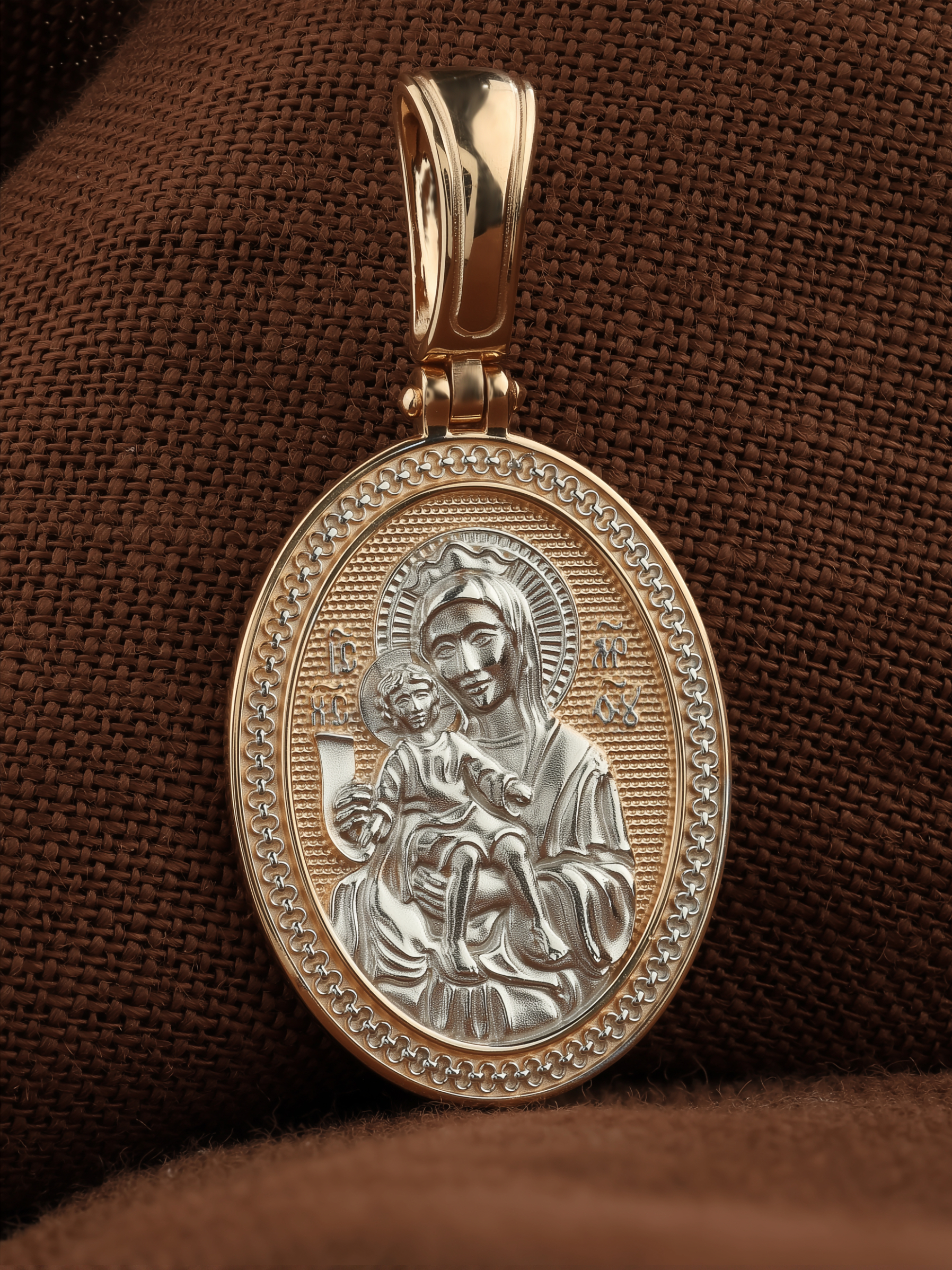 На обороте образка написана молитва:«Ныне к Тебе прибегаю, Пречистая Дево, спаси мя мольбами Твоими».