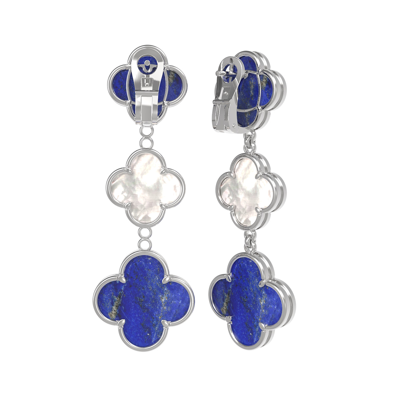 Серьги из белого золота c лазуритом и перламутром