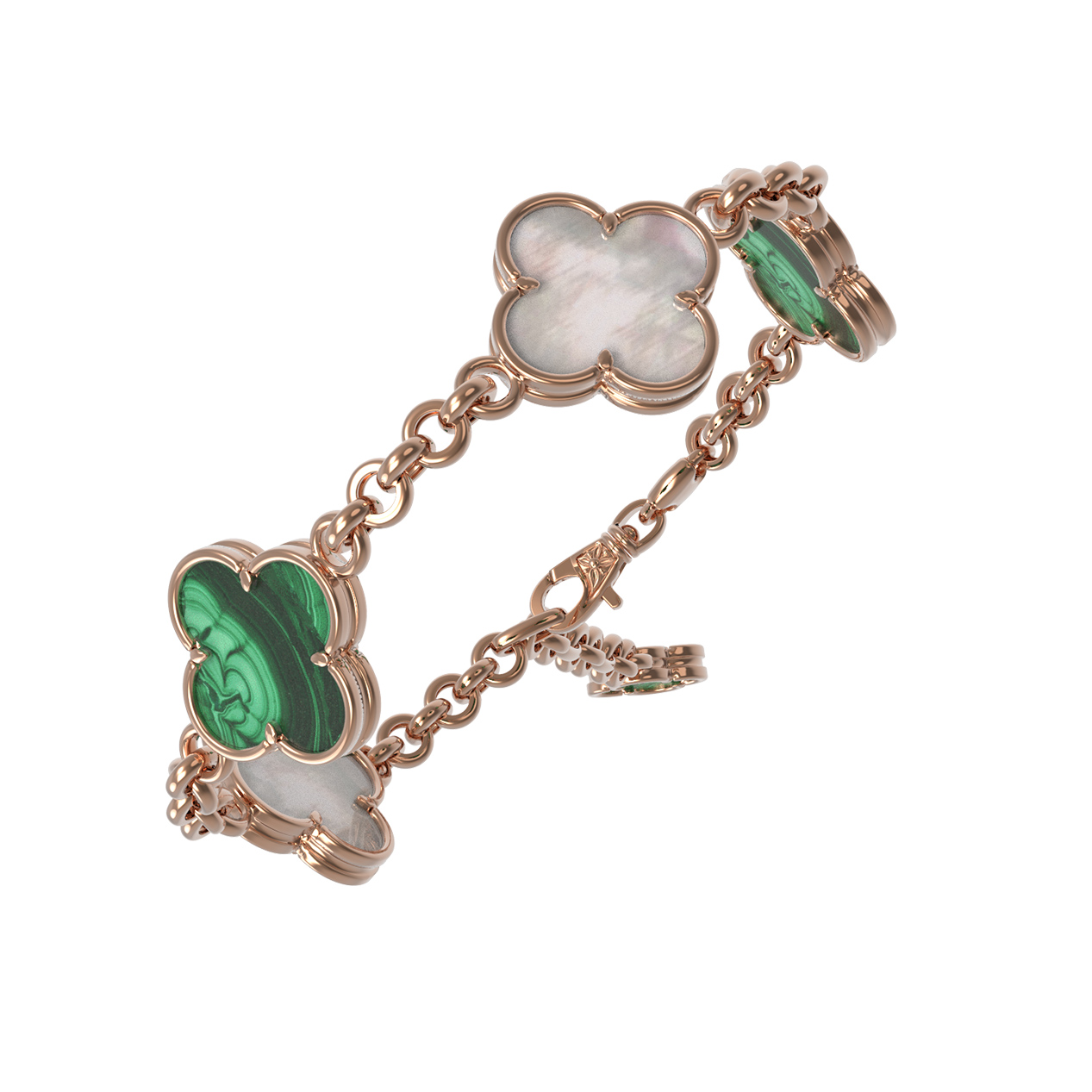 Браслет из золота c малахитом и перламутром