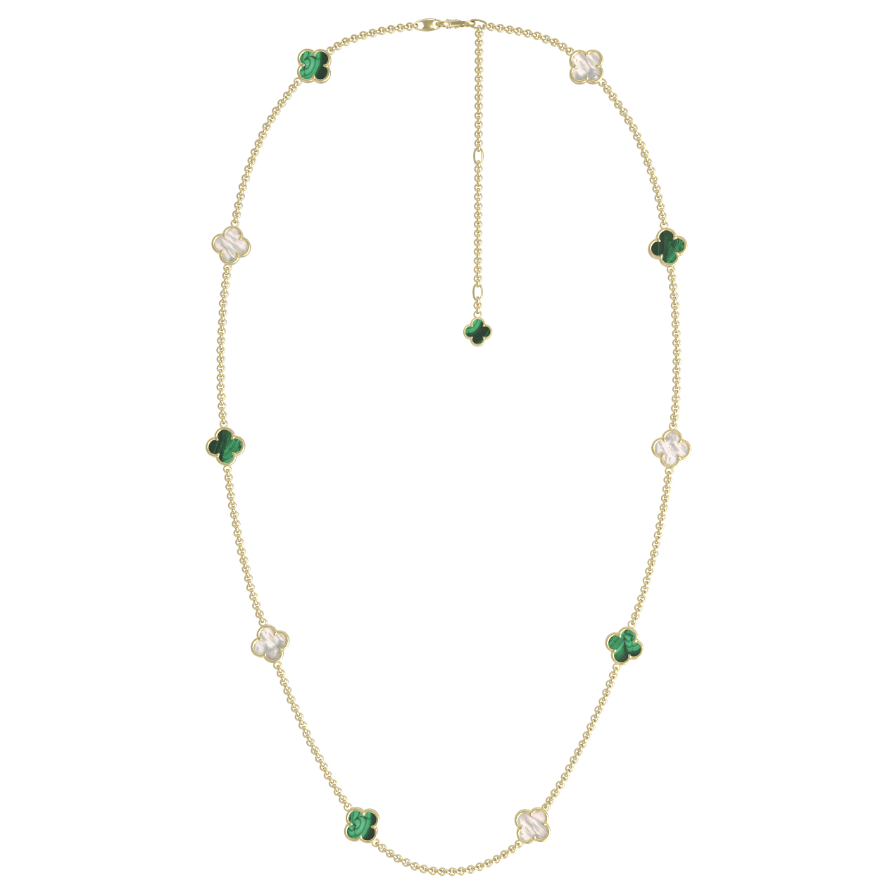 Колье из лимонного золота c малахитом и перламутром