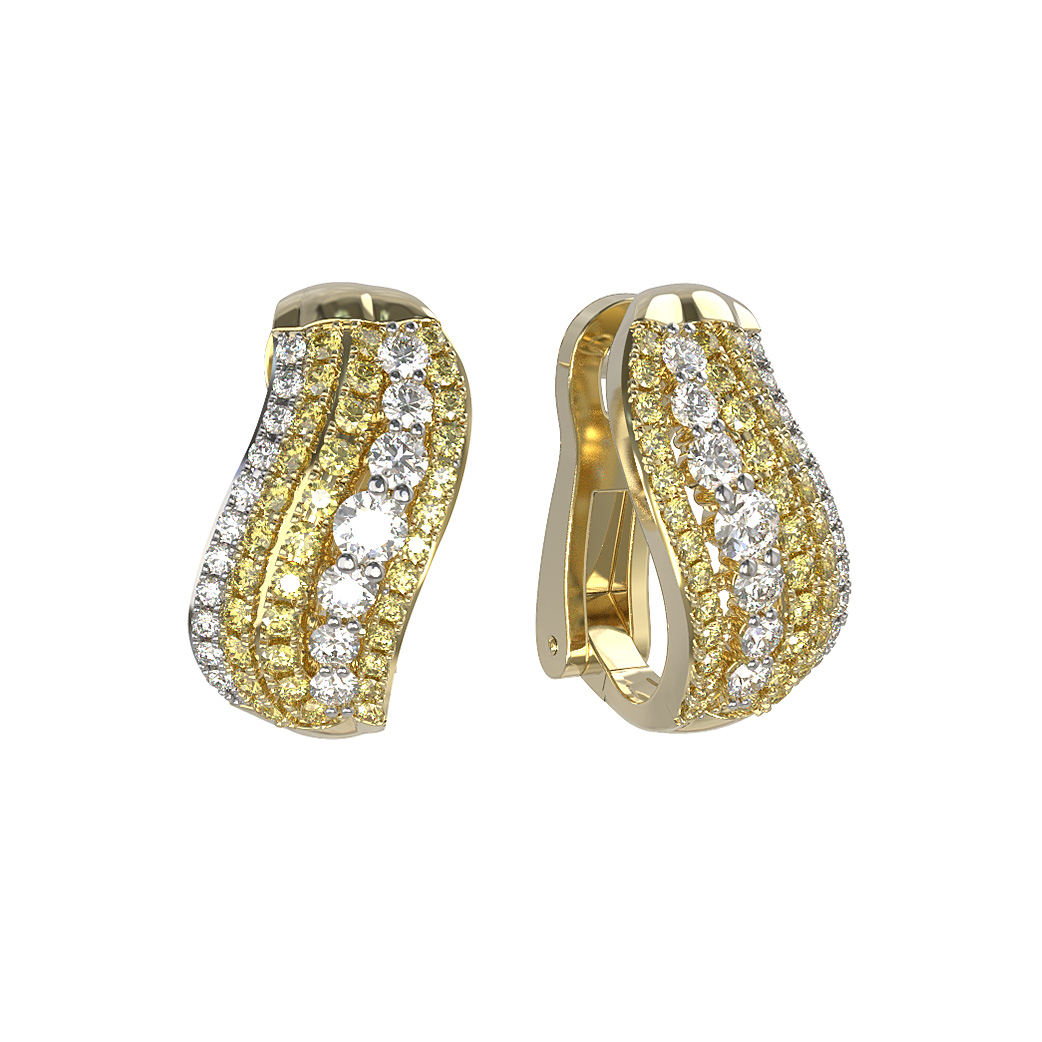 Серьги из лимонного золота c бриллиантами и сапфиром