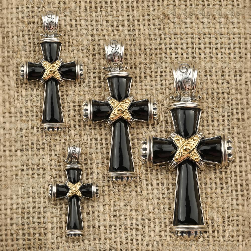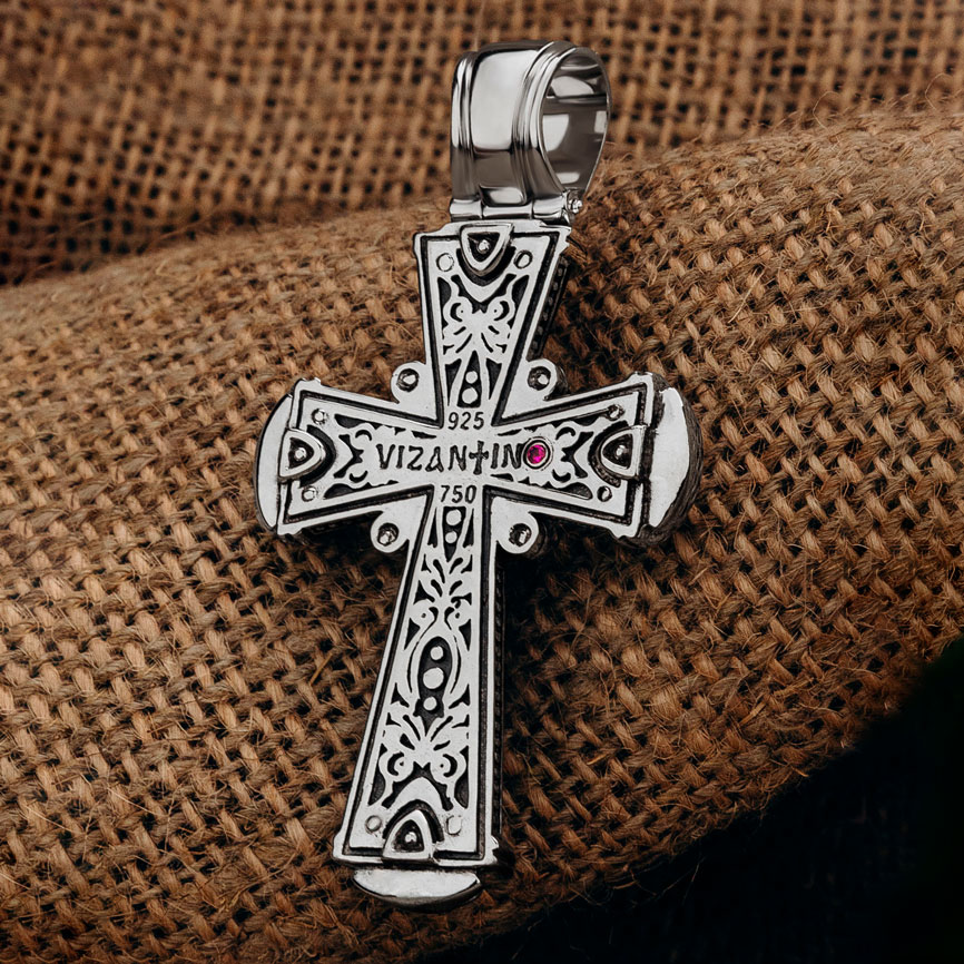 Крест из серебра и золота c ониксом и рубином