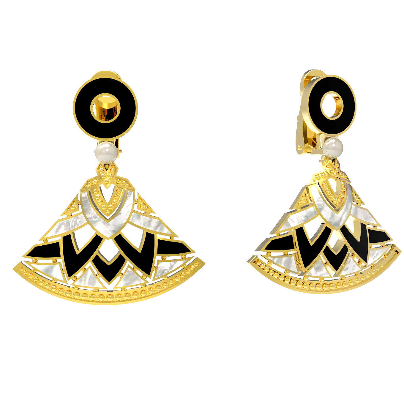 Серьги из лимонного золота c жемчугом, ониксом и перламутром
