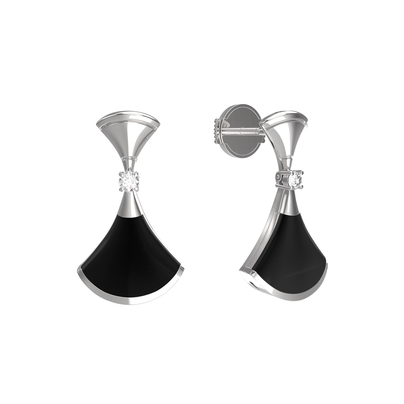 Серьги из белого золота c бриллиантами и ониксом
