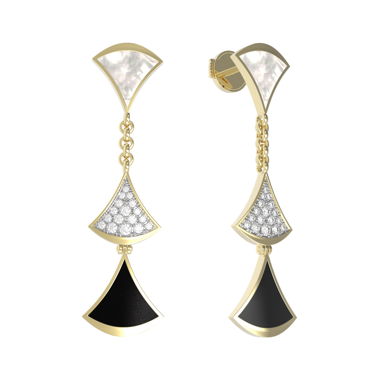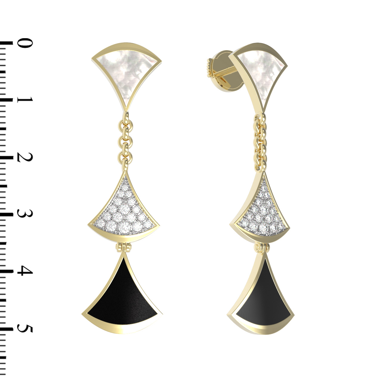 Серьги из лимонного золота c бриллиантами, ониксом и перламутром