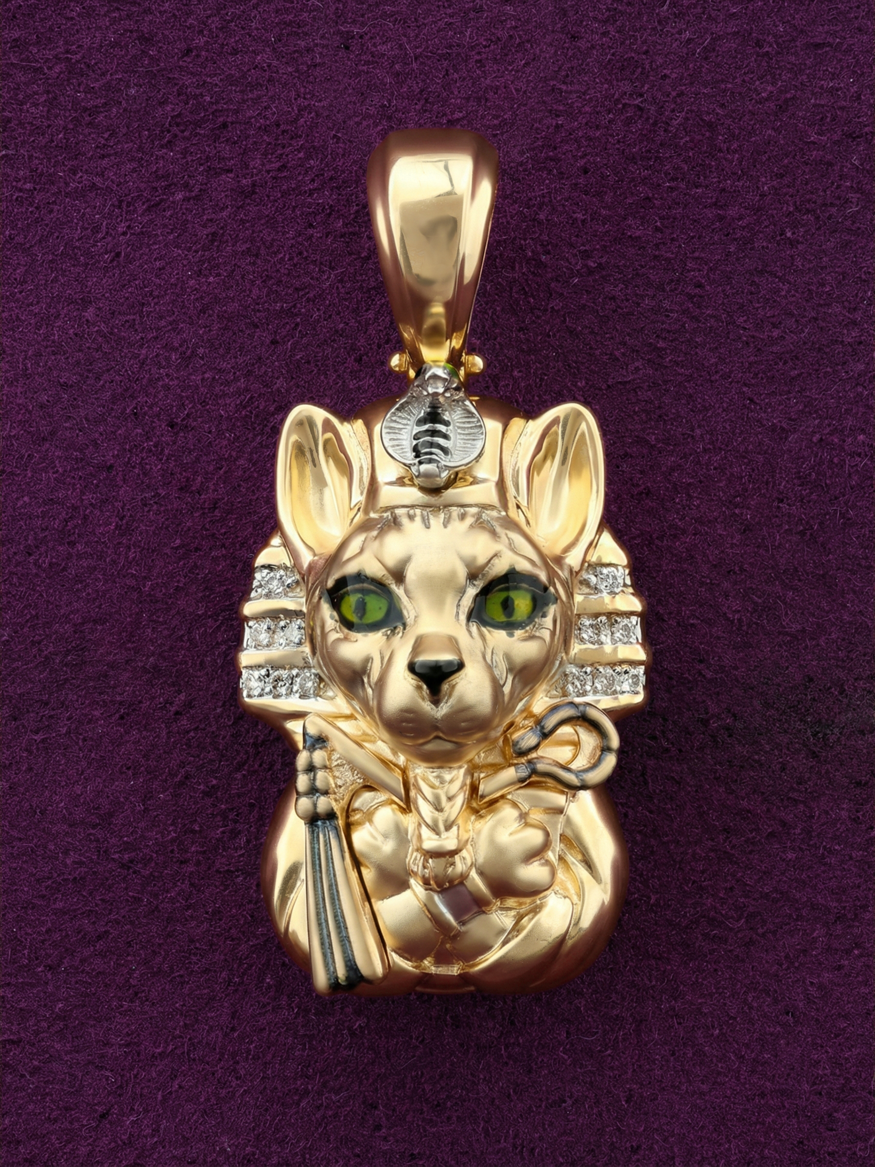 Подвеска из лимонного золота c эмалью, бриллиантами и рубином