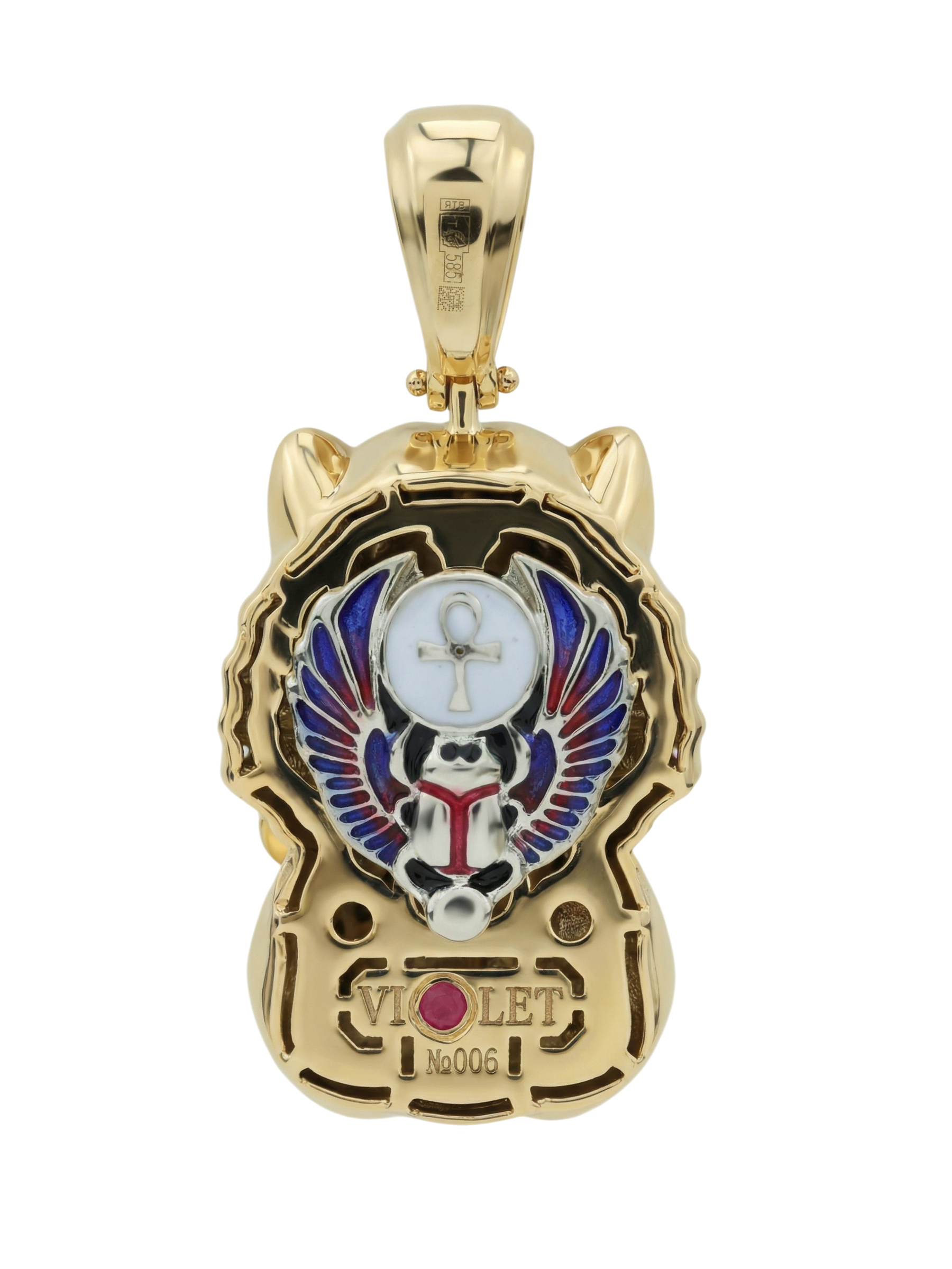 Подвеска из лимонного золота c эмалью, бриллиантами и рубином