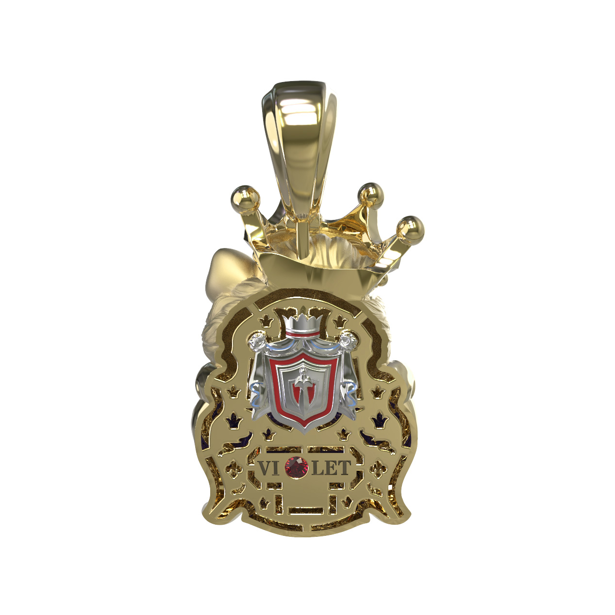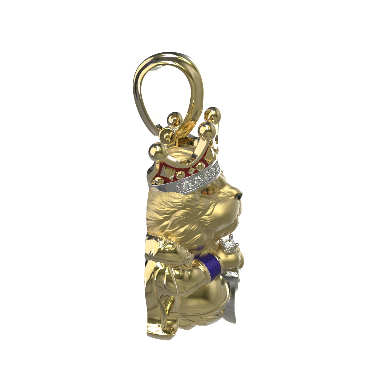 Подвеска из лимонного золота c эмалью, бриллиантами и рубином