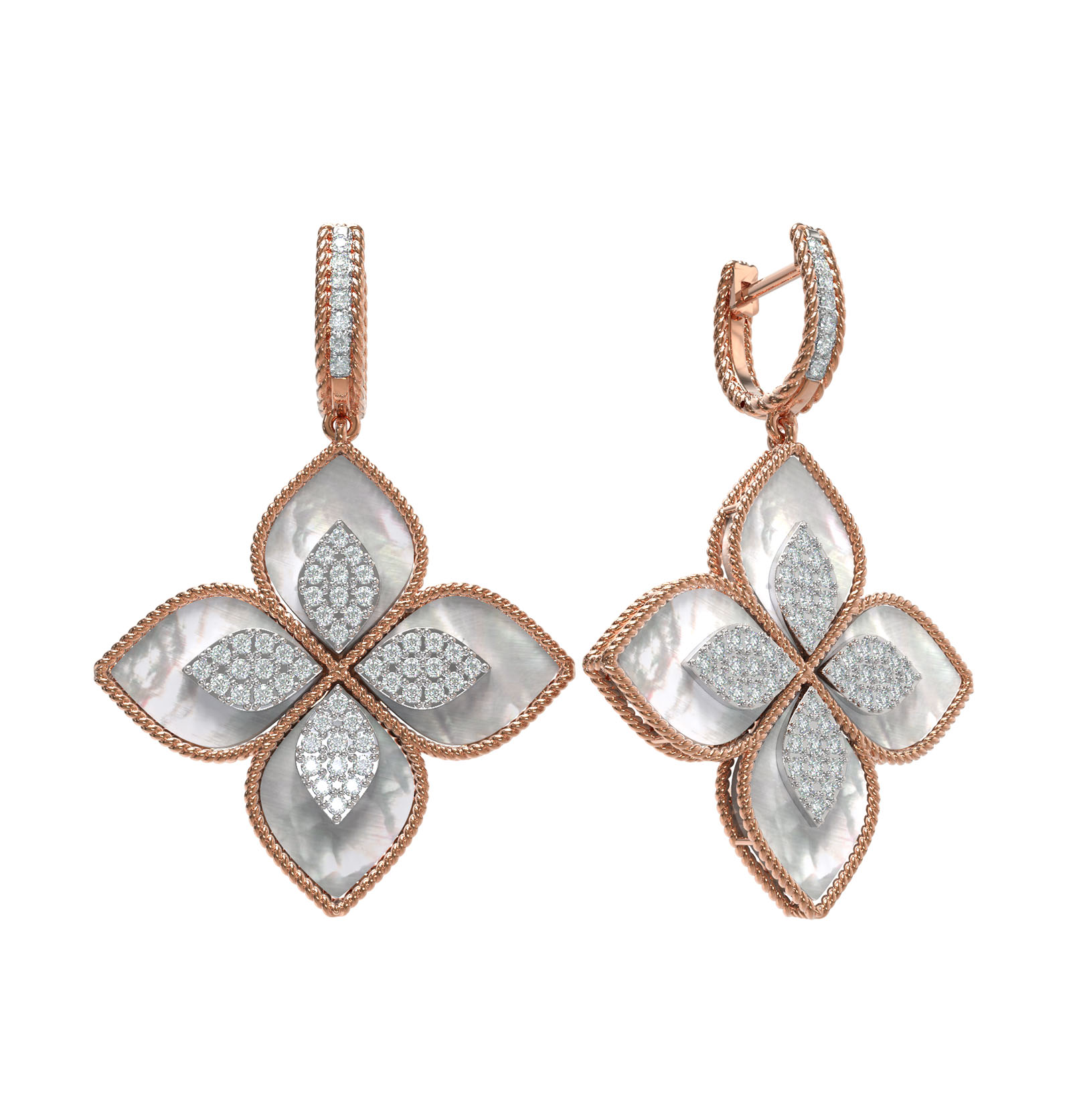 Серьги из золота c бриллиантами и перламутром