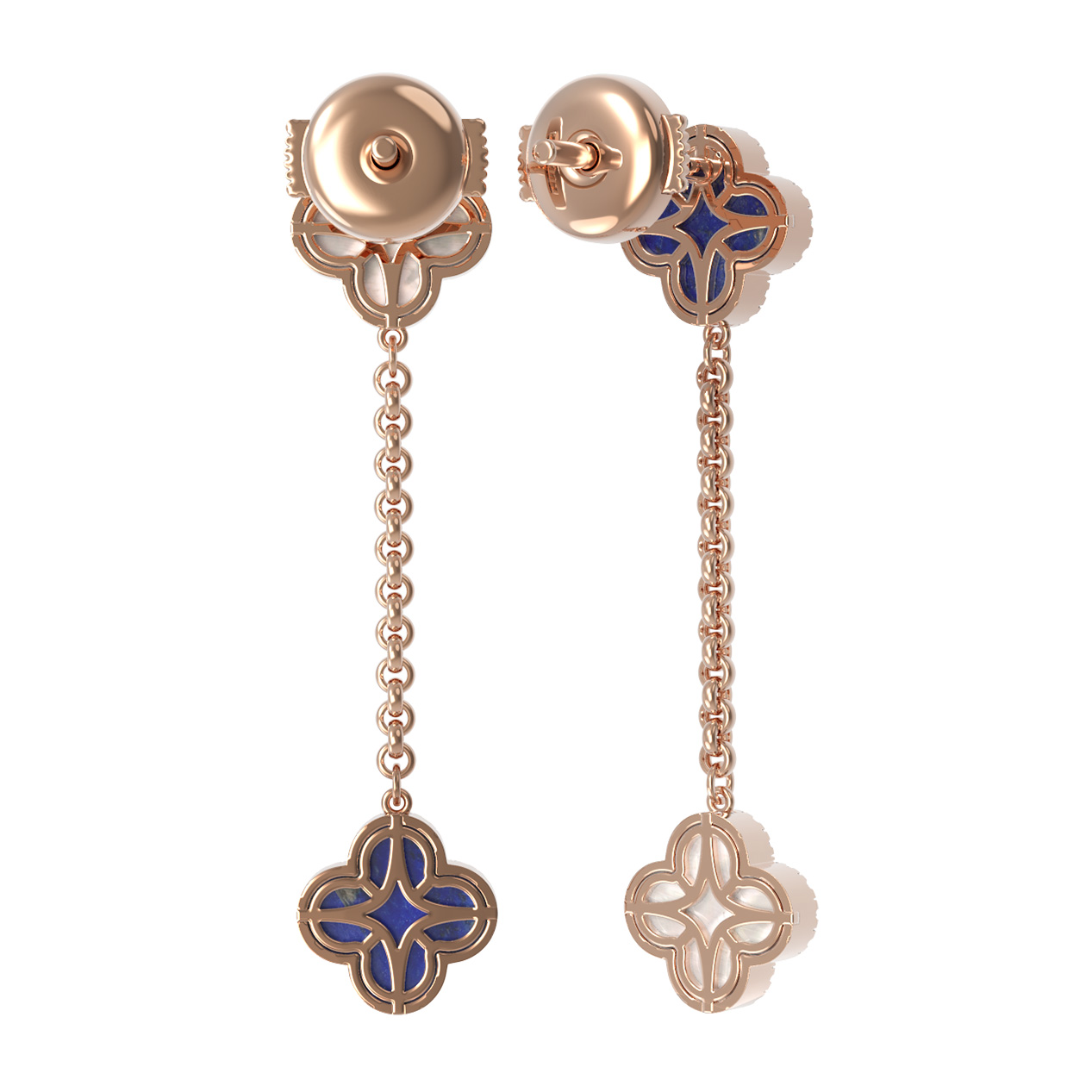 Серьги из золота c бриллиантами, лазуритом и перламутром
