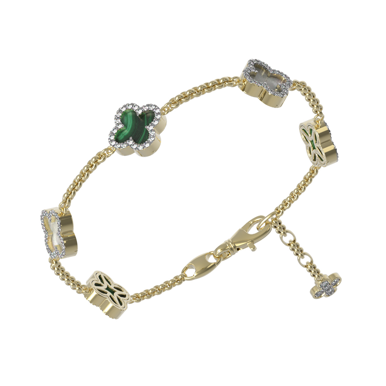 Браслет из лимонного золота c бриллиантами, малахитом и перламутром