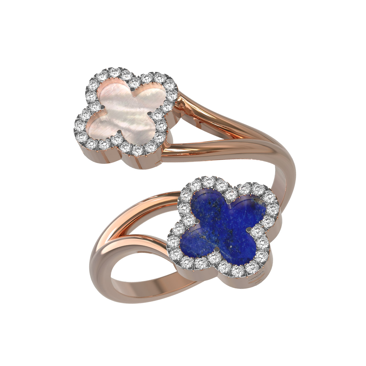 Кольцо из золота c бриллиантами, лазуритом и перламутром