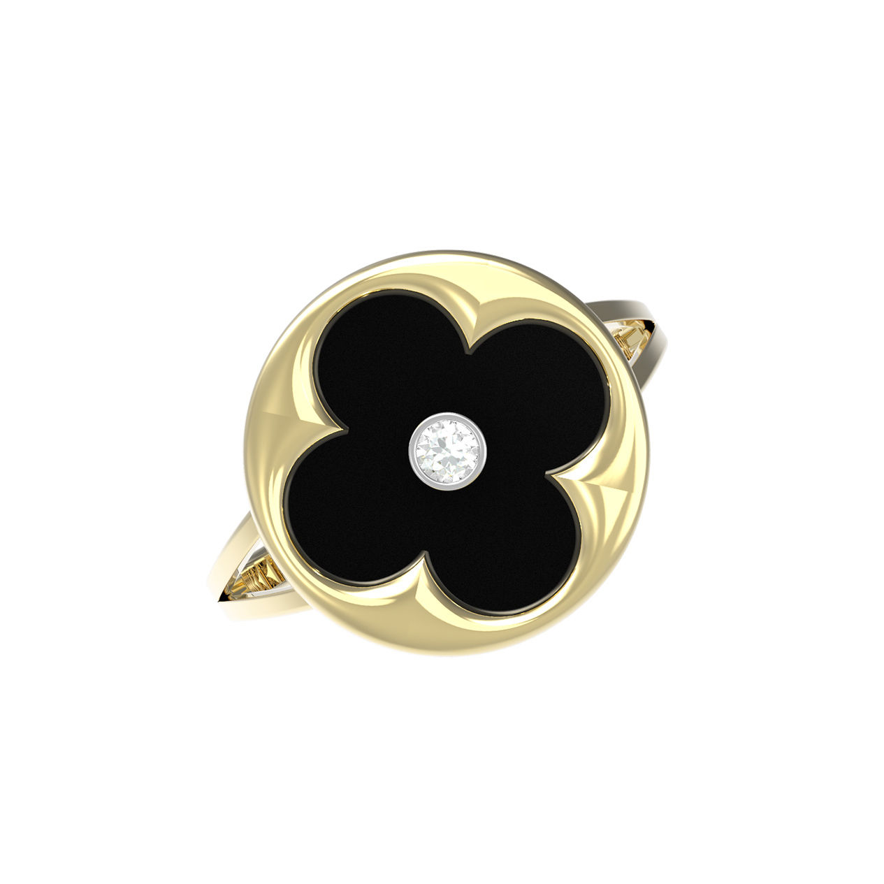 Кольцо из лимонного золота c бриллиантами и ониксом