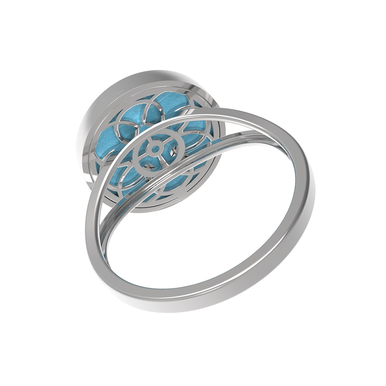 Кольцо из белого золота c бриллиантами и бирюзой