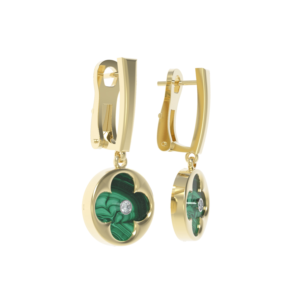 Серьги из лимонного золота c бриллиантами и малахитом