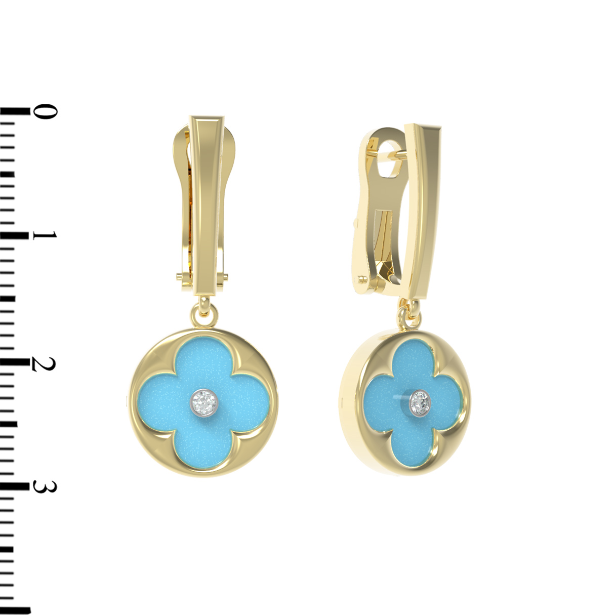 Серьги из лимонного золота c бриллиантами и бирюзой