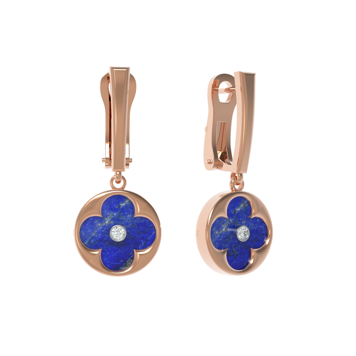 Серьги из золота c бриллиантами и лазуритом