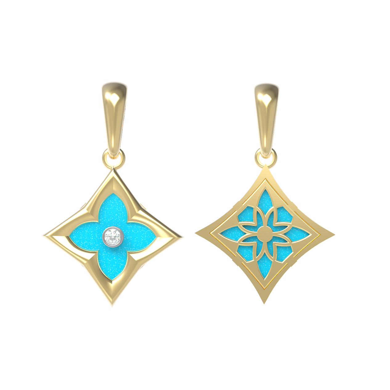 Подвеска из лимонного золота c бриллиантами и бирюзой