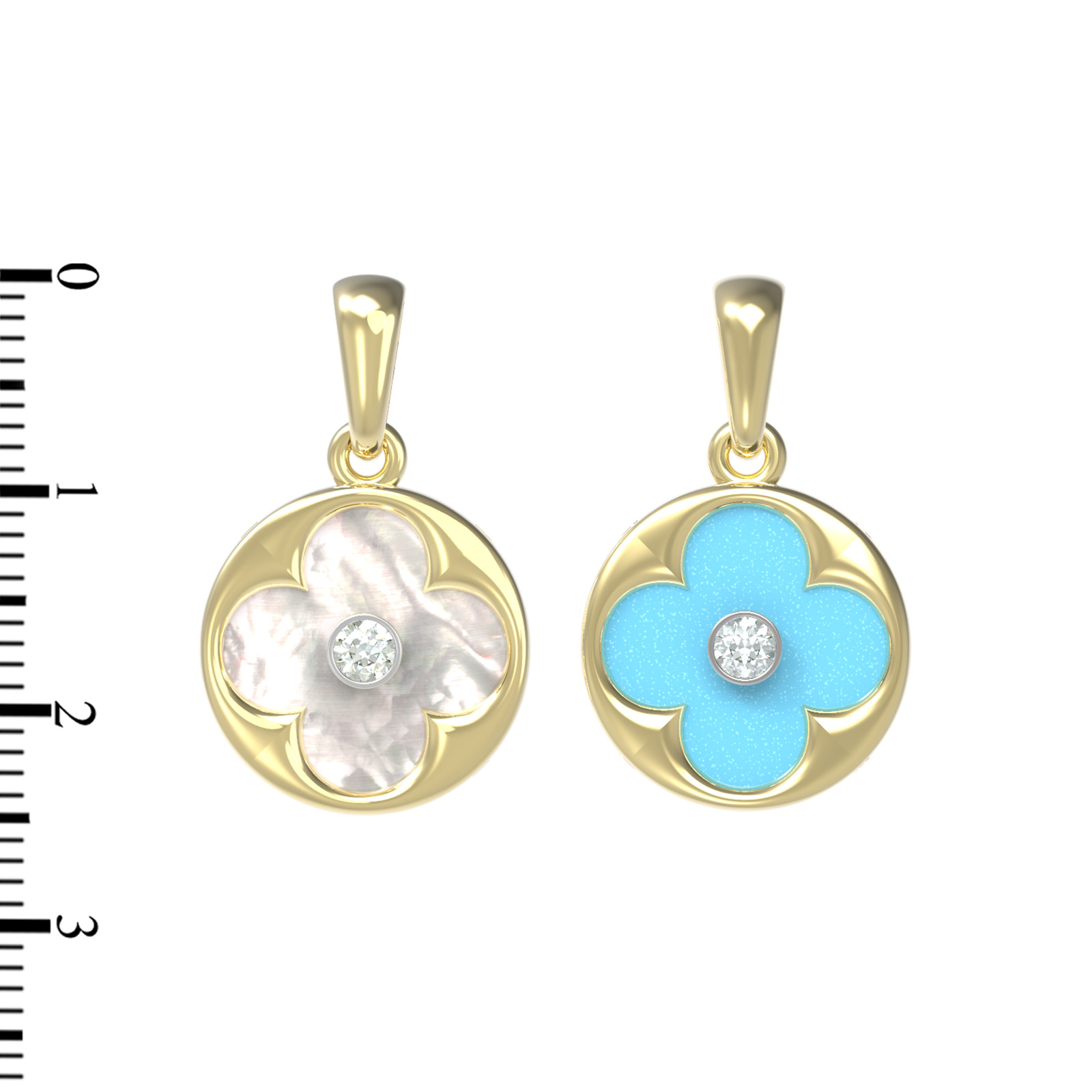 Подвеска из лимонного золота c бриллиантами, бирюзой и перламутром