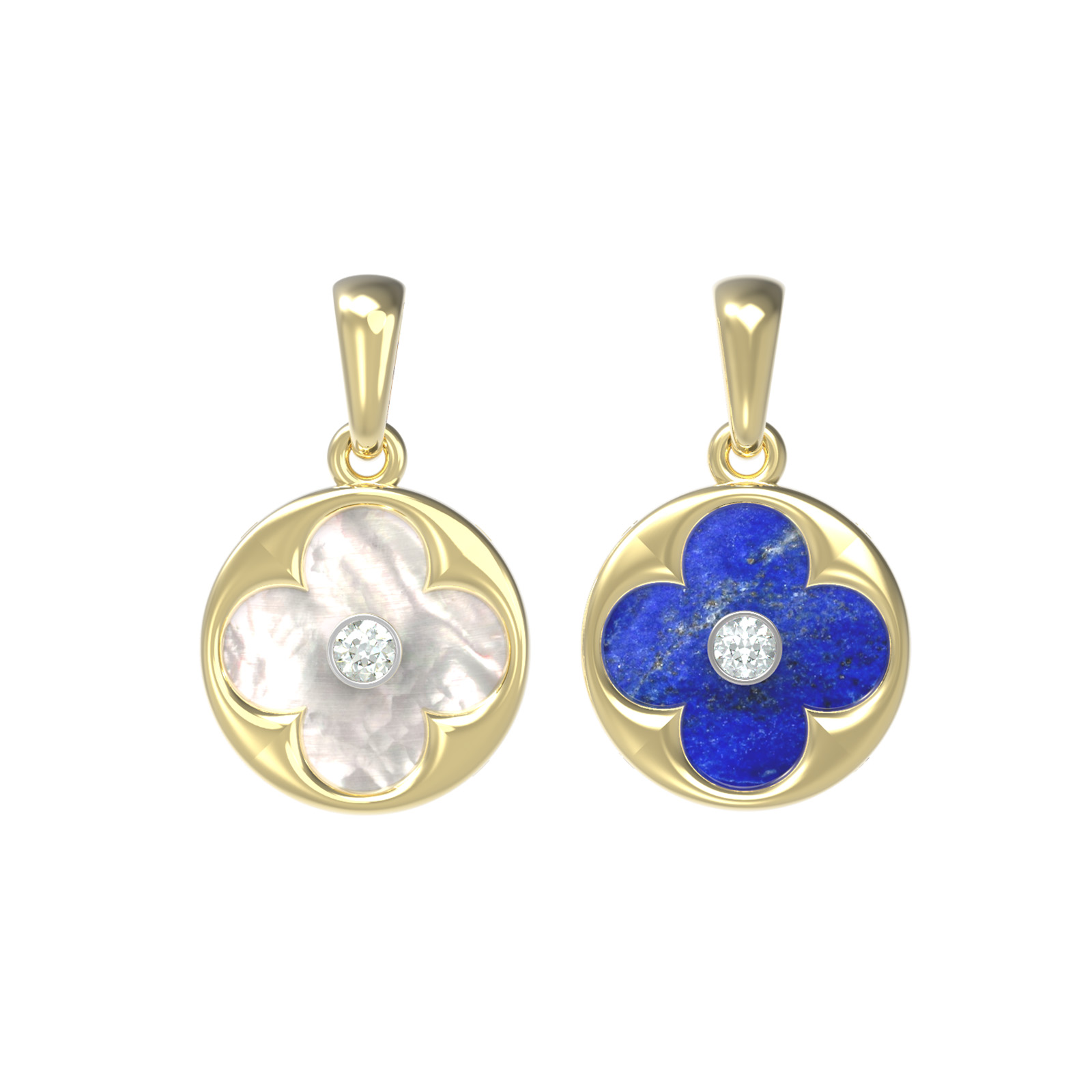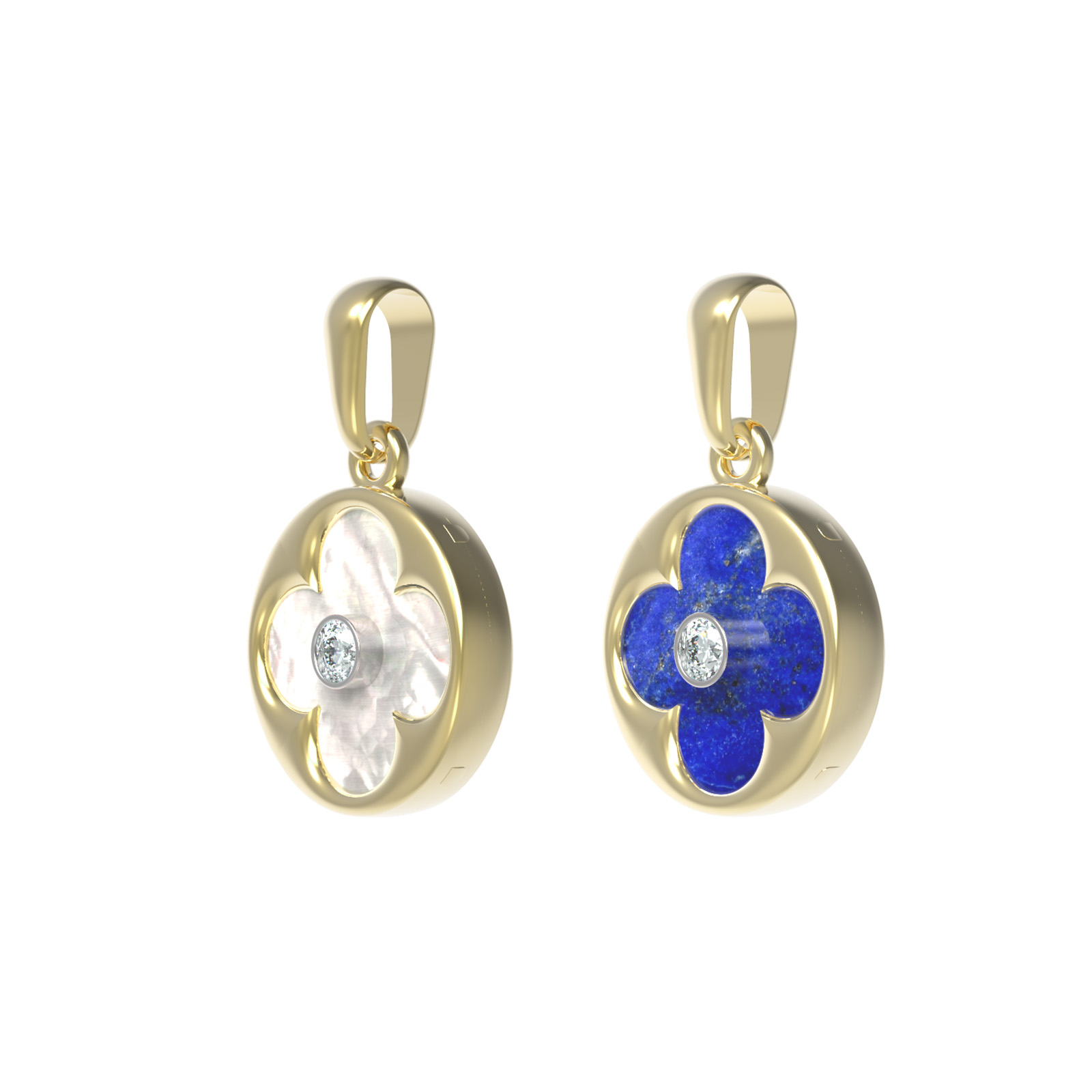 Подвеска из лимонного золота c бриллиантами, лазуритом и перламутром