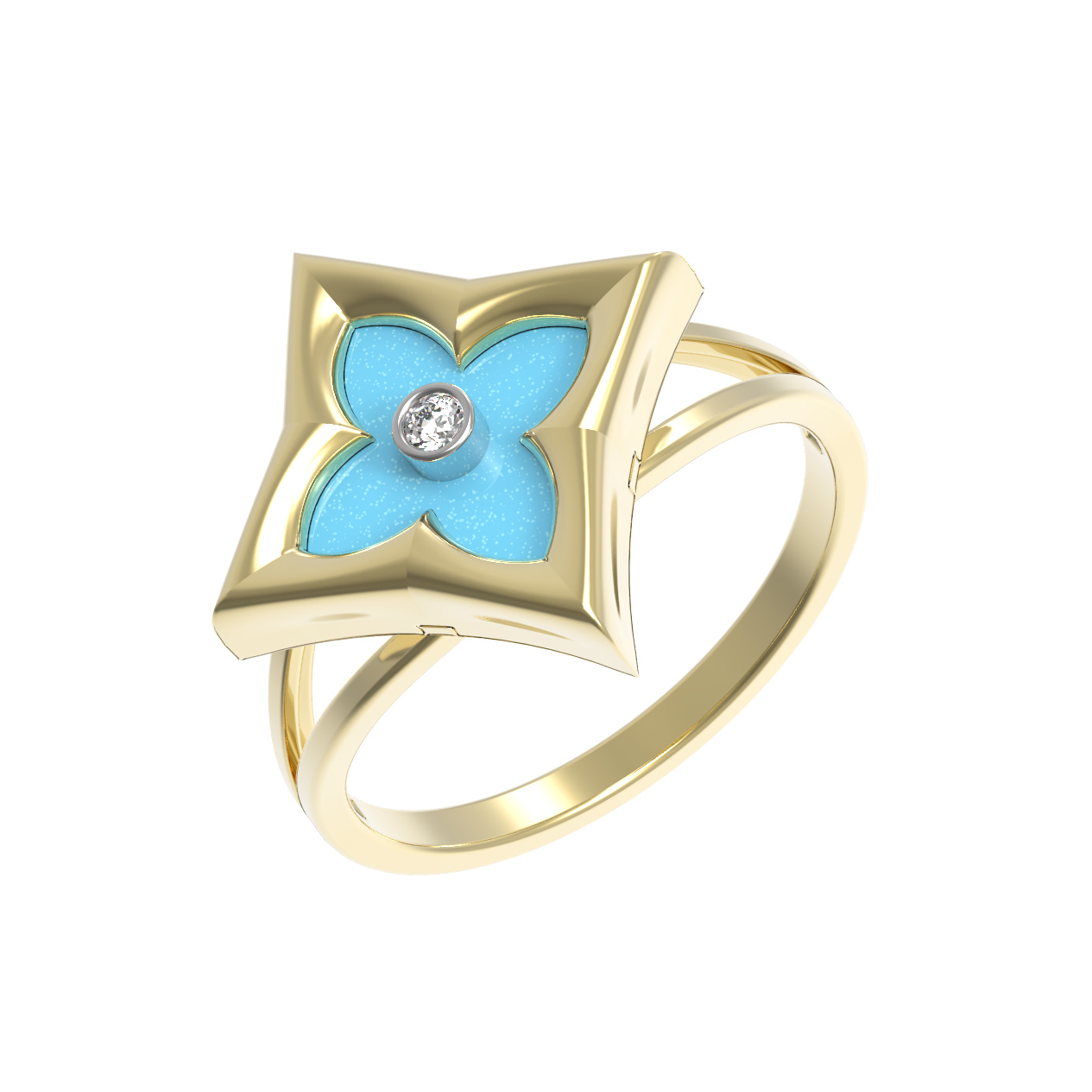 Кольцо из лимонного золота c бриллиантами и бирюзой