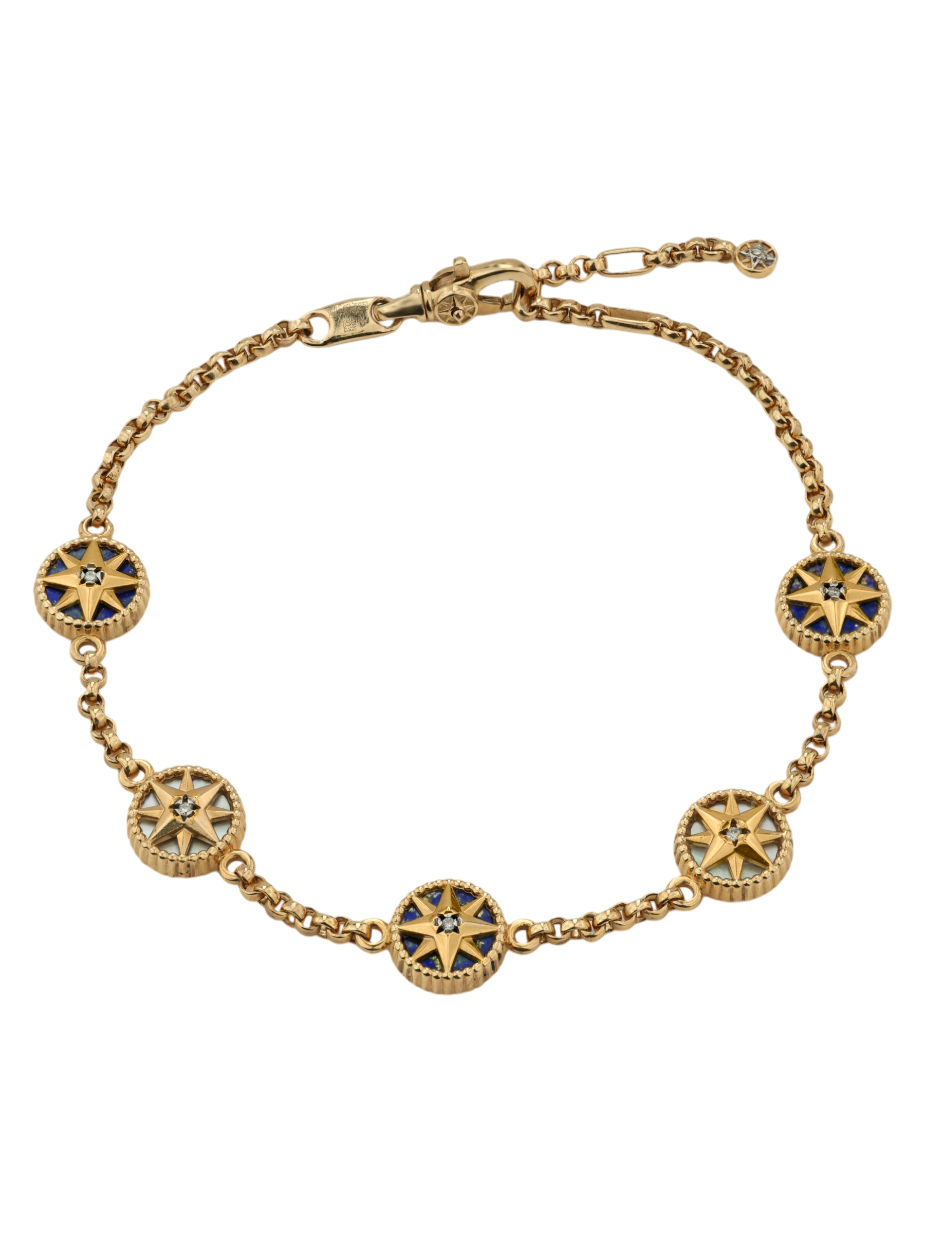 Браслет из золота c бриллиантами, лазуритом и перламутром