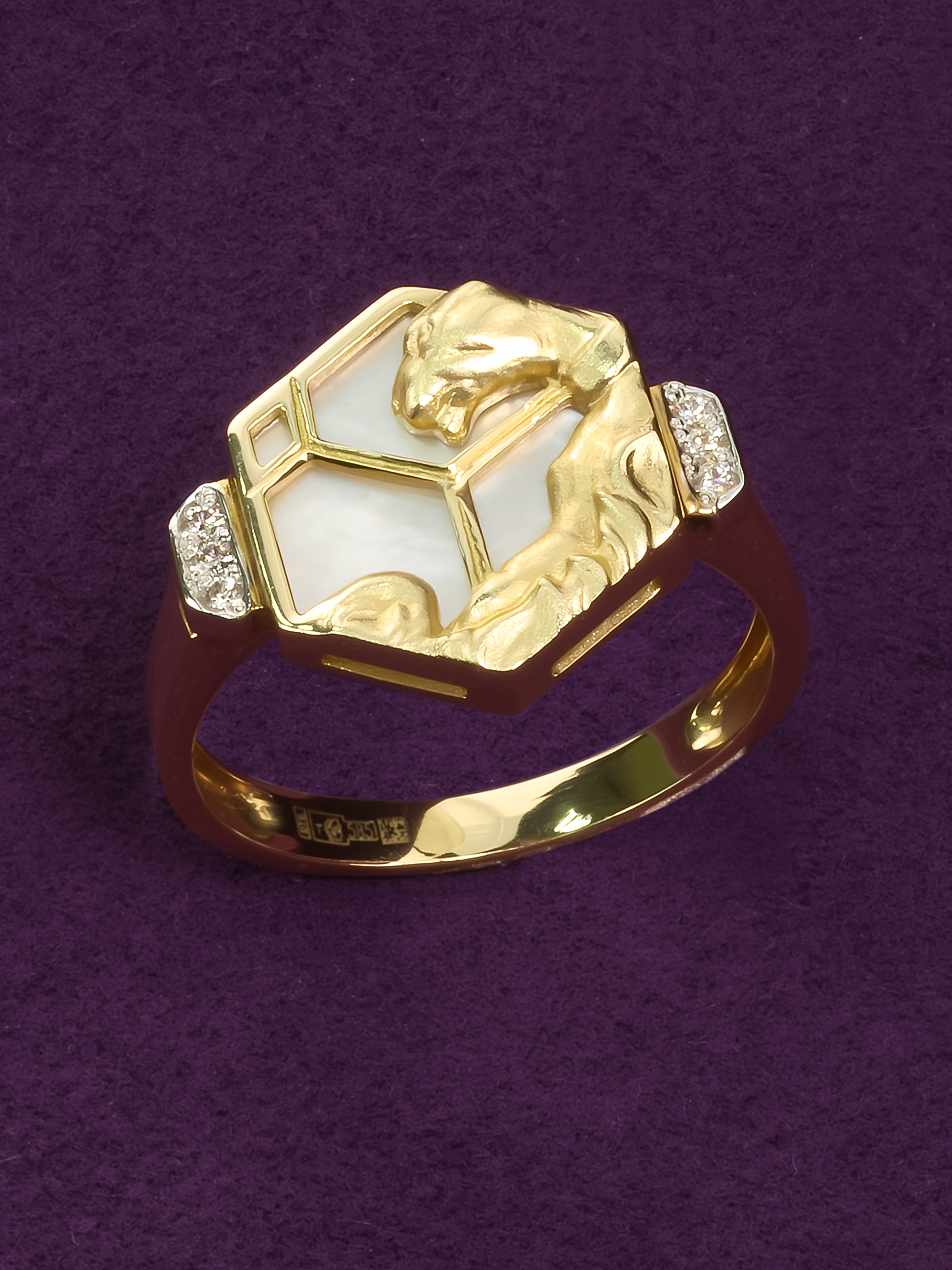 Кольцо из лимонного золота c бриллиантами и перламутром