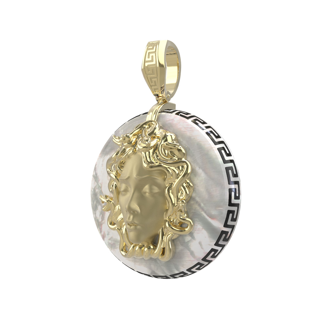 Подвеска из лимонного золота c эмаль и перламутром