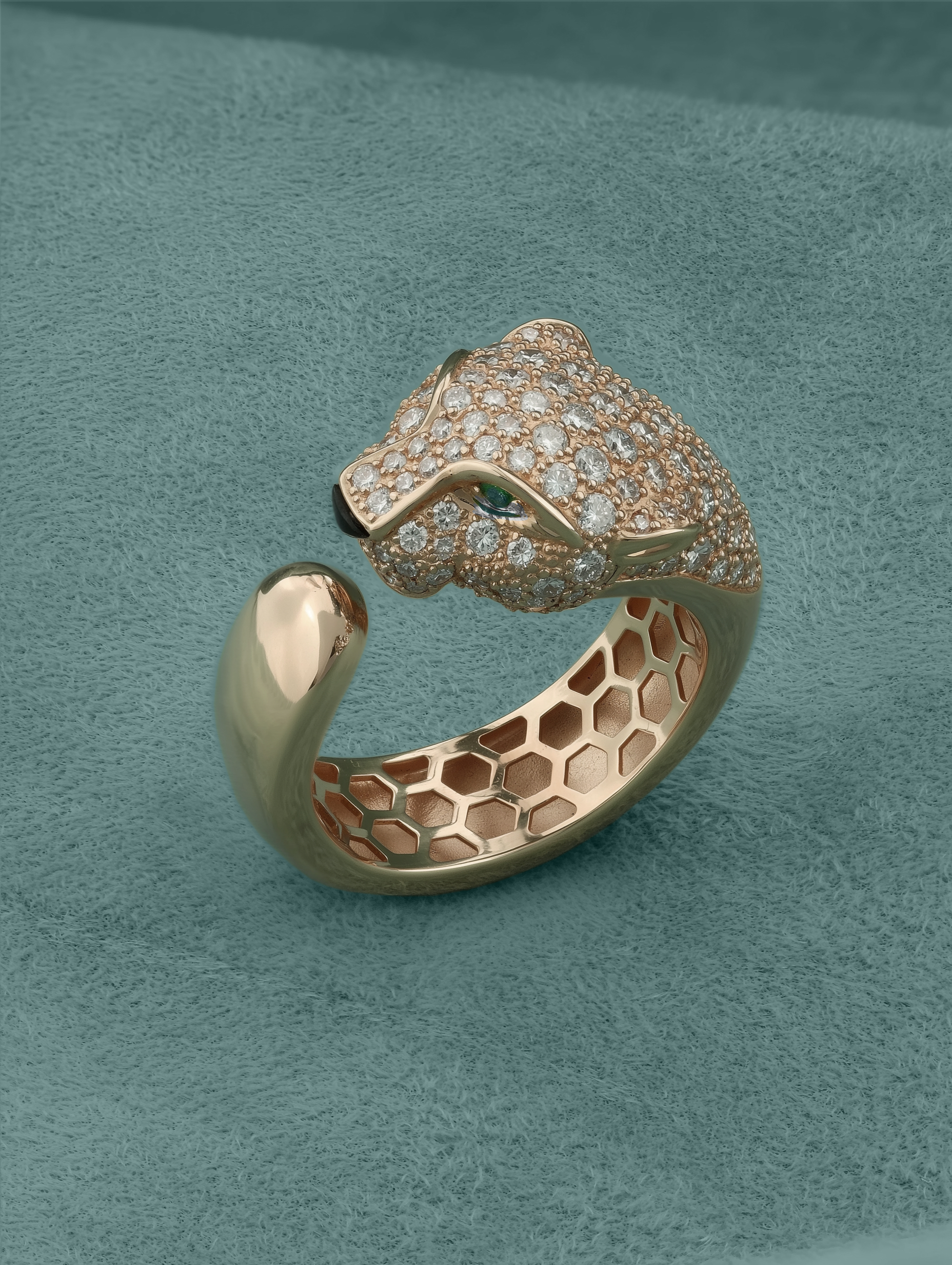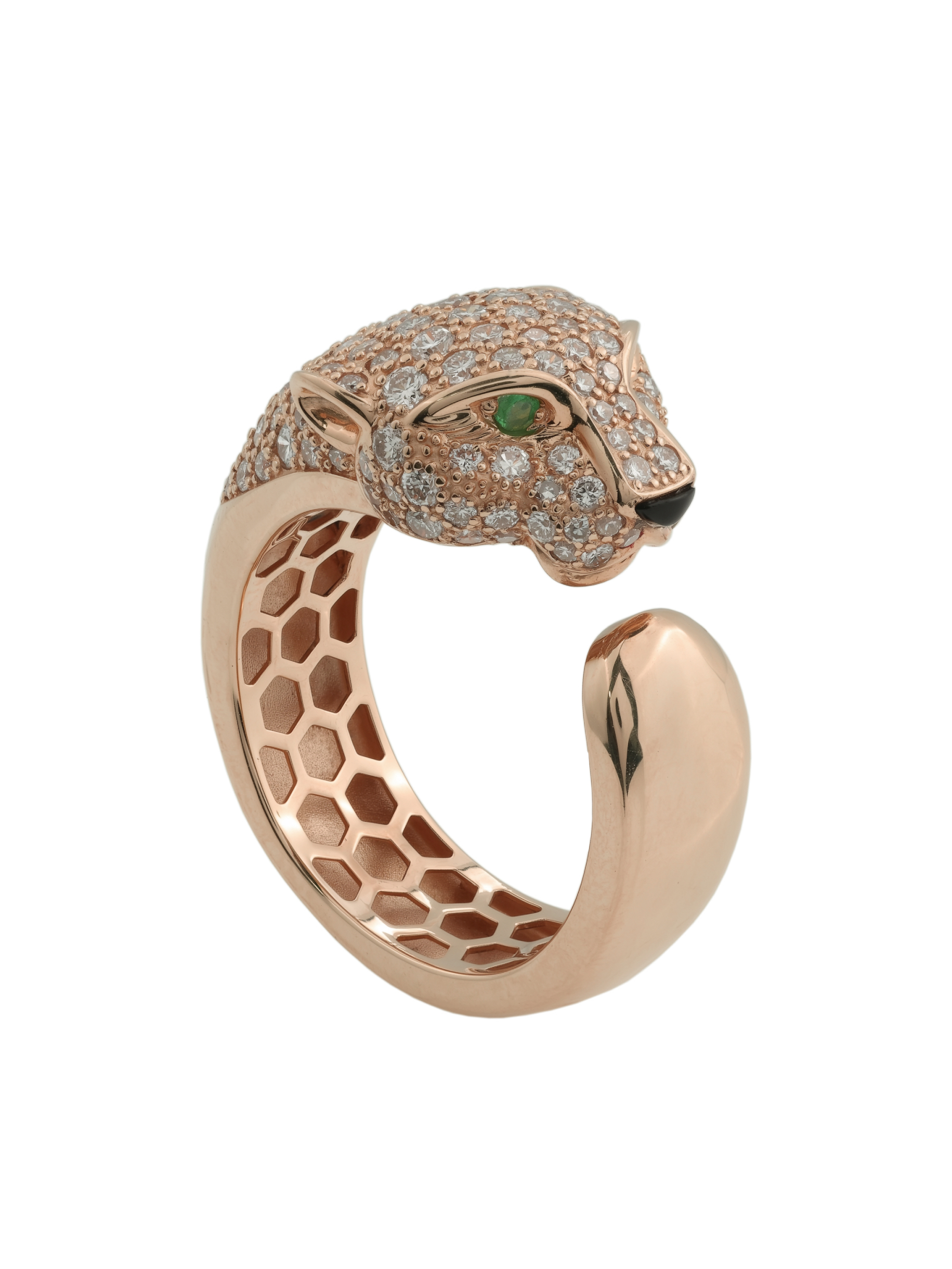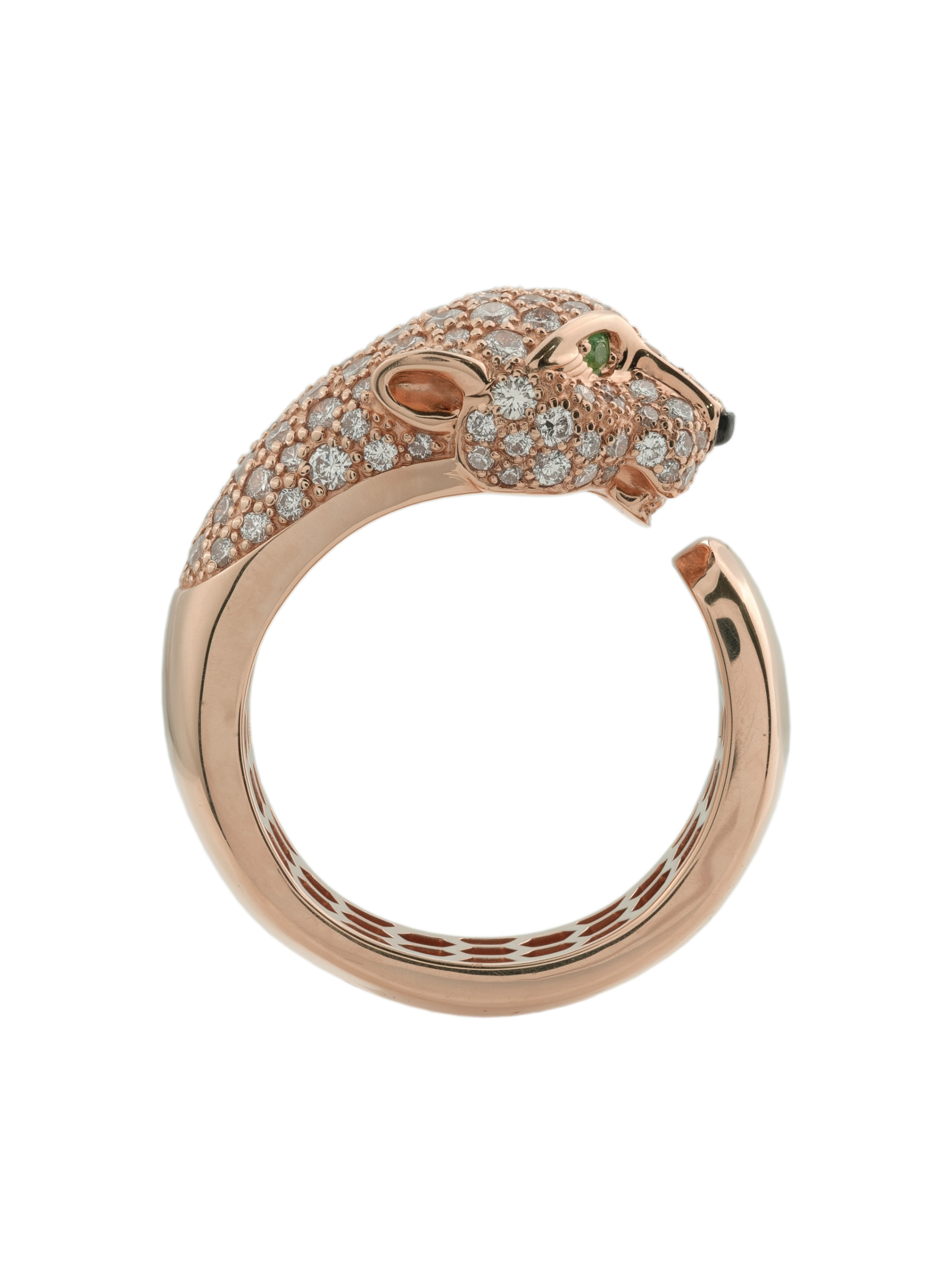 Кольцо из розового золота c бриллиантами, изумрудом и ониксом