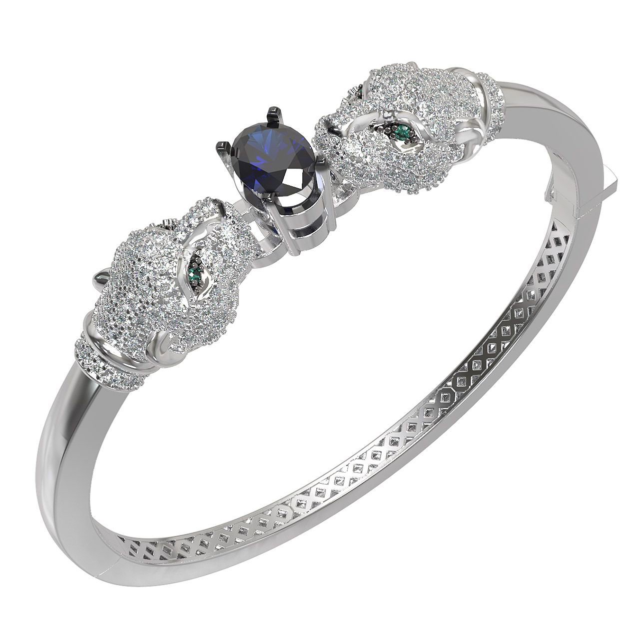 Браслет из белого золота c бриллиантами, сапфиром и изумрудом