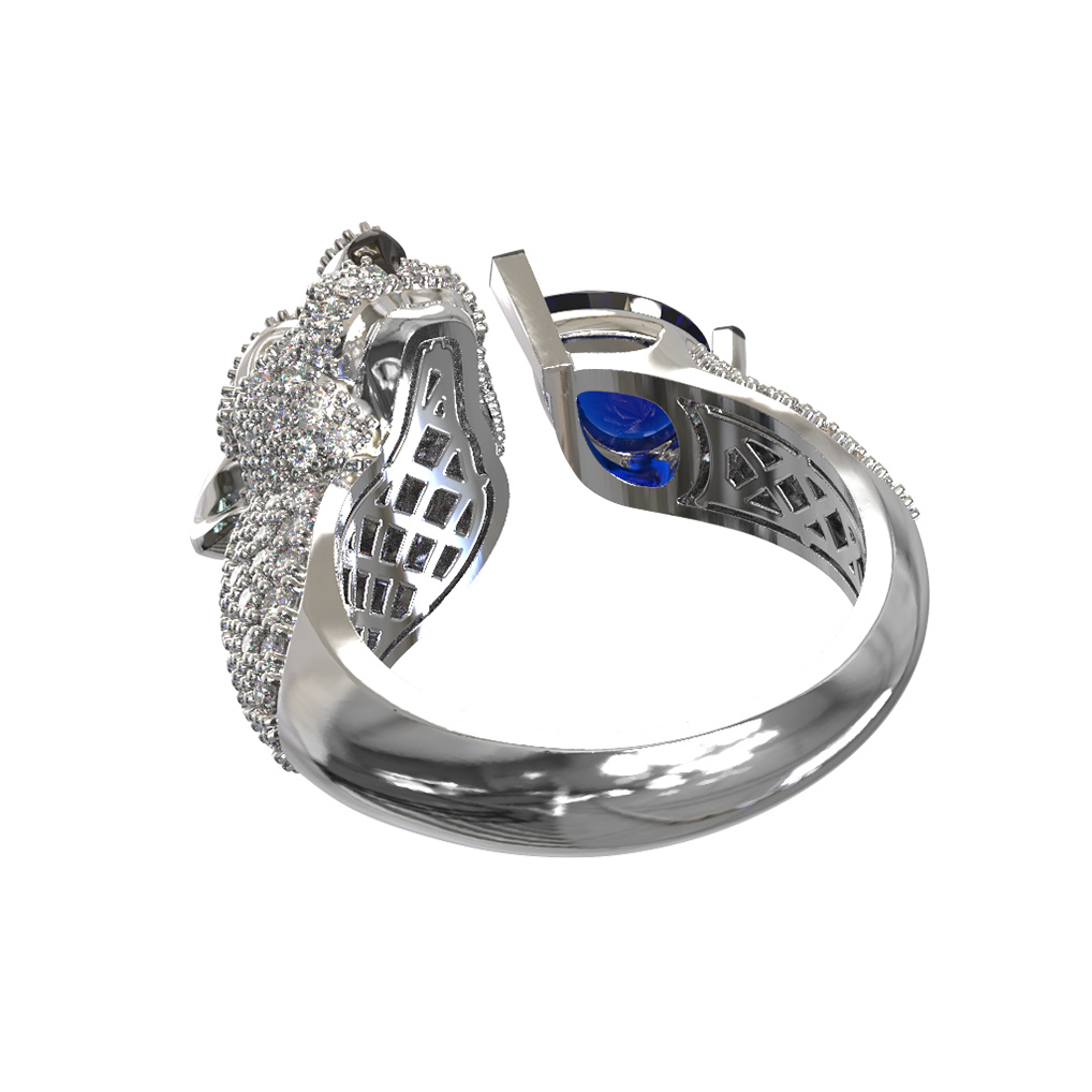 Кольцо из белого золота c бриллиантами, сапфиром и изумрудом