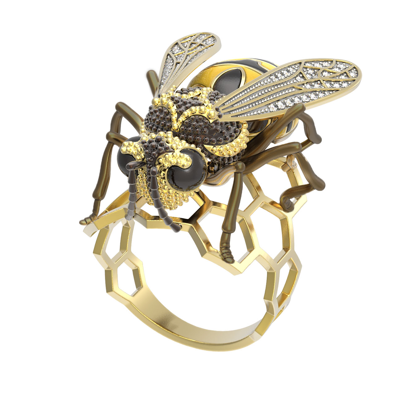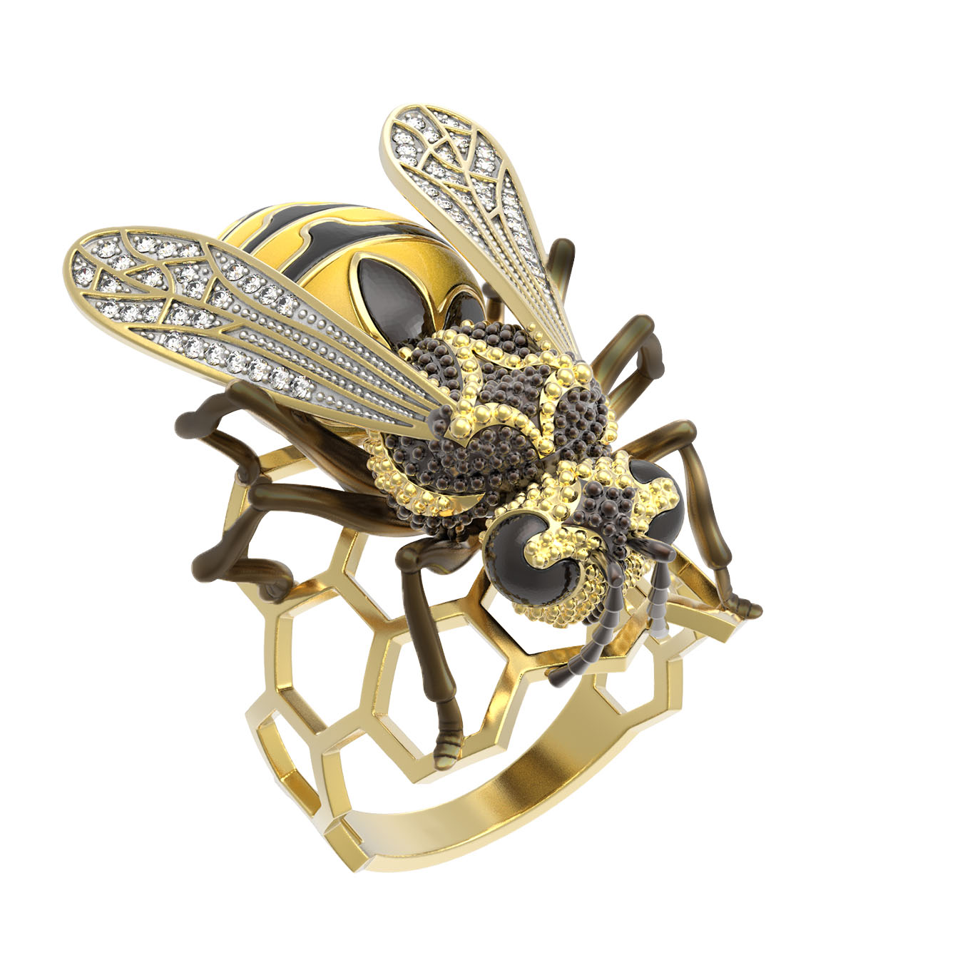 Кольцо из лимонного золота c эмалью и фианитом