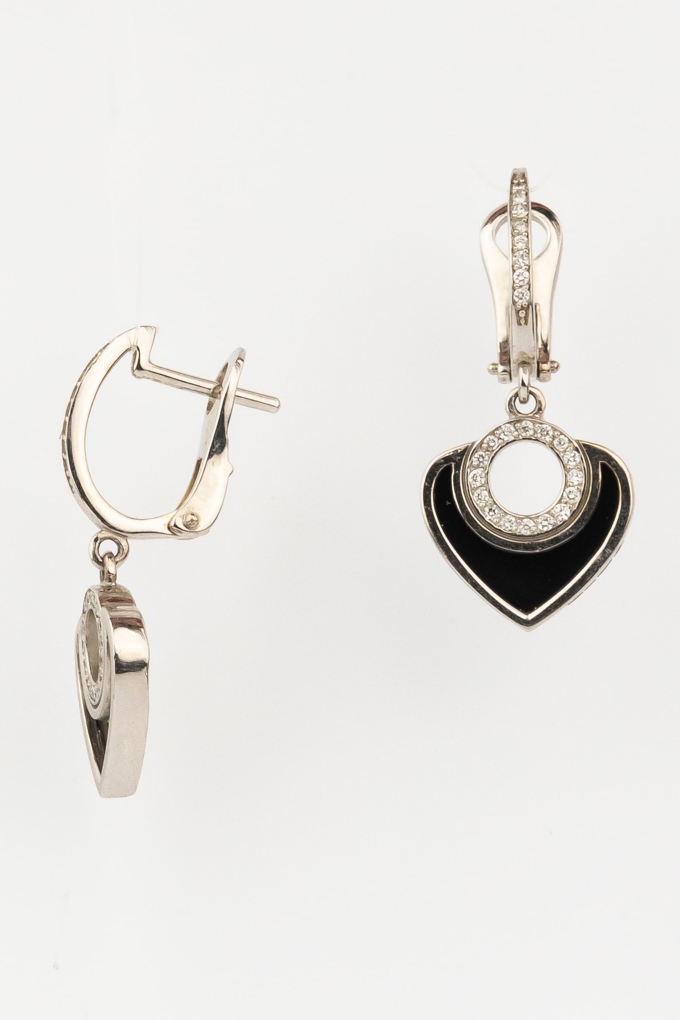 Серьги из белого золота c бриллиантами и ониксом
