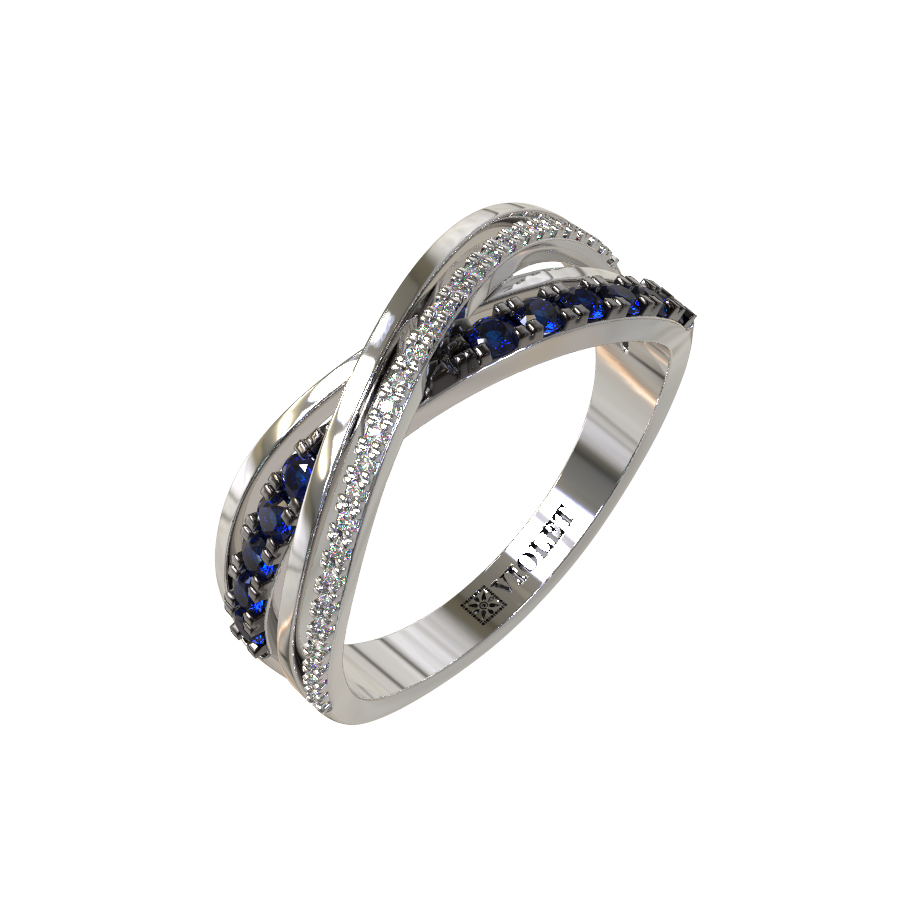Кольцо из белого золота c бриллиантами и сапфиром