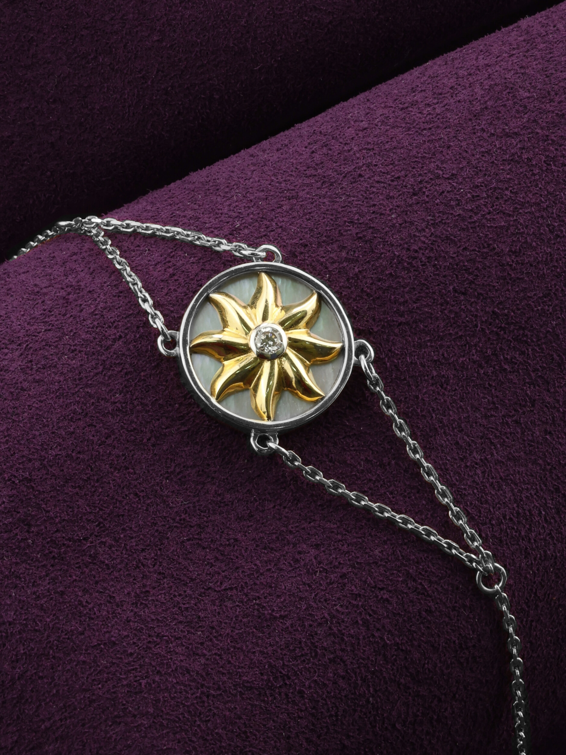 Браслет из белого золота c бриллиантами и перламутром