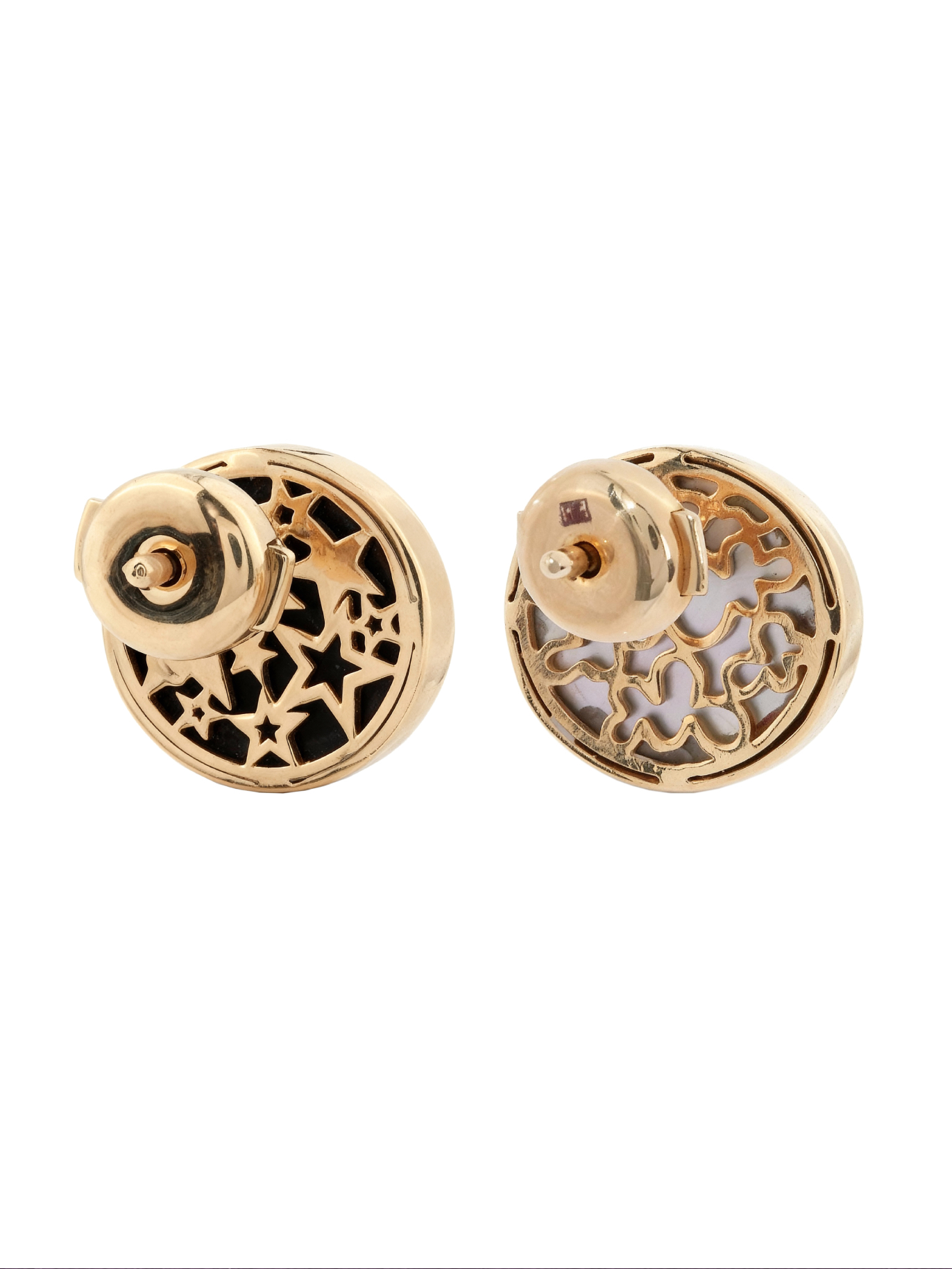 Серьги из золота c бриллиантами, ониксом и перламутром