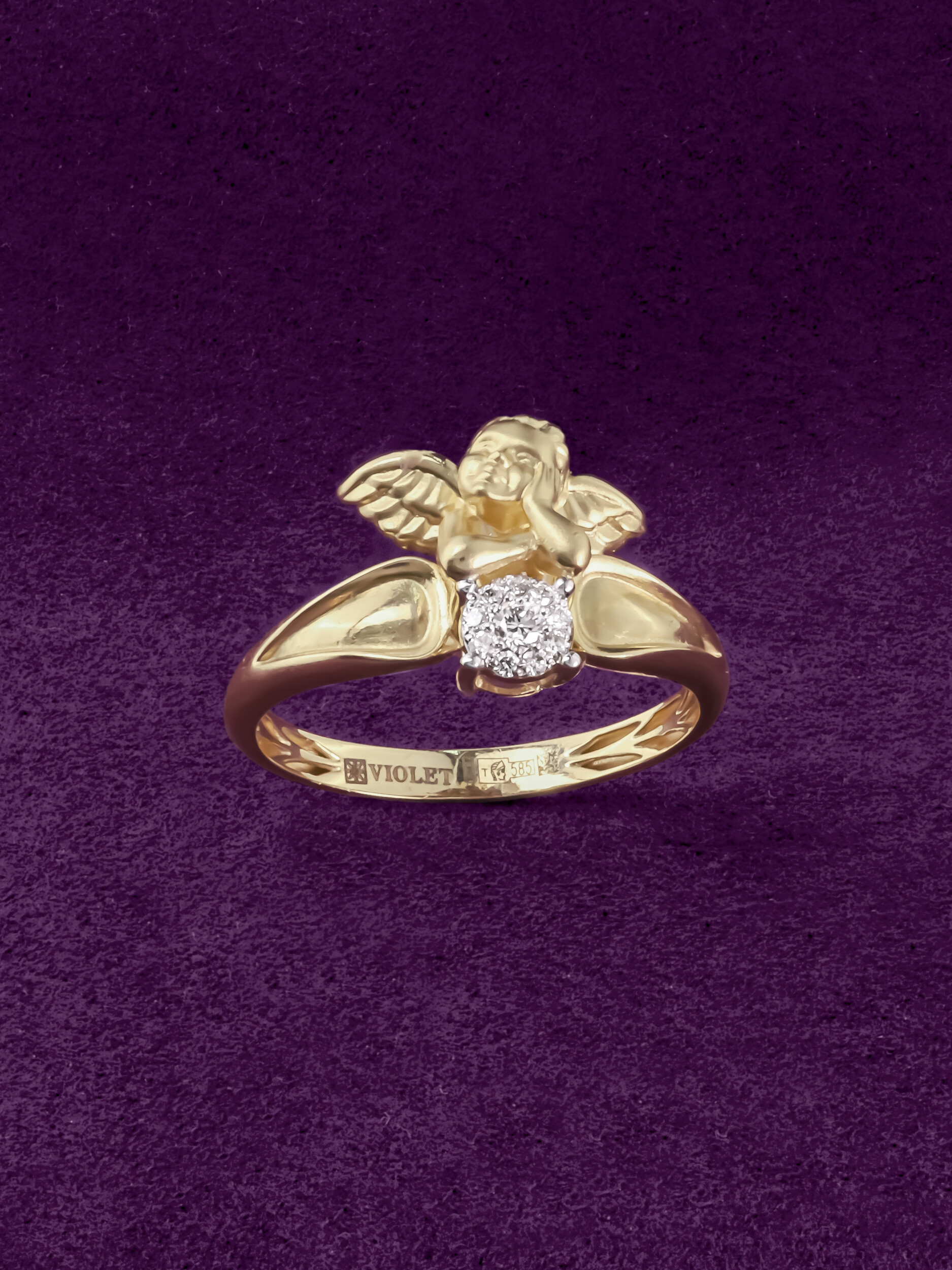 Кольцо из лимонного золота c бриллиантами