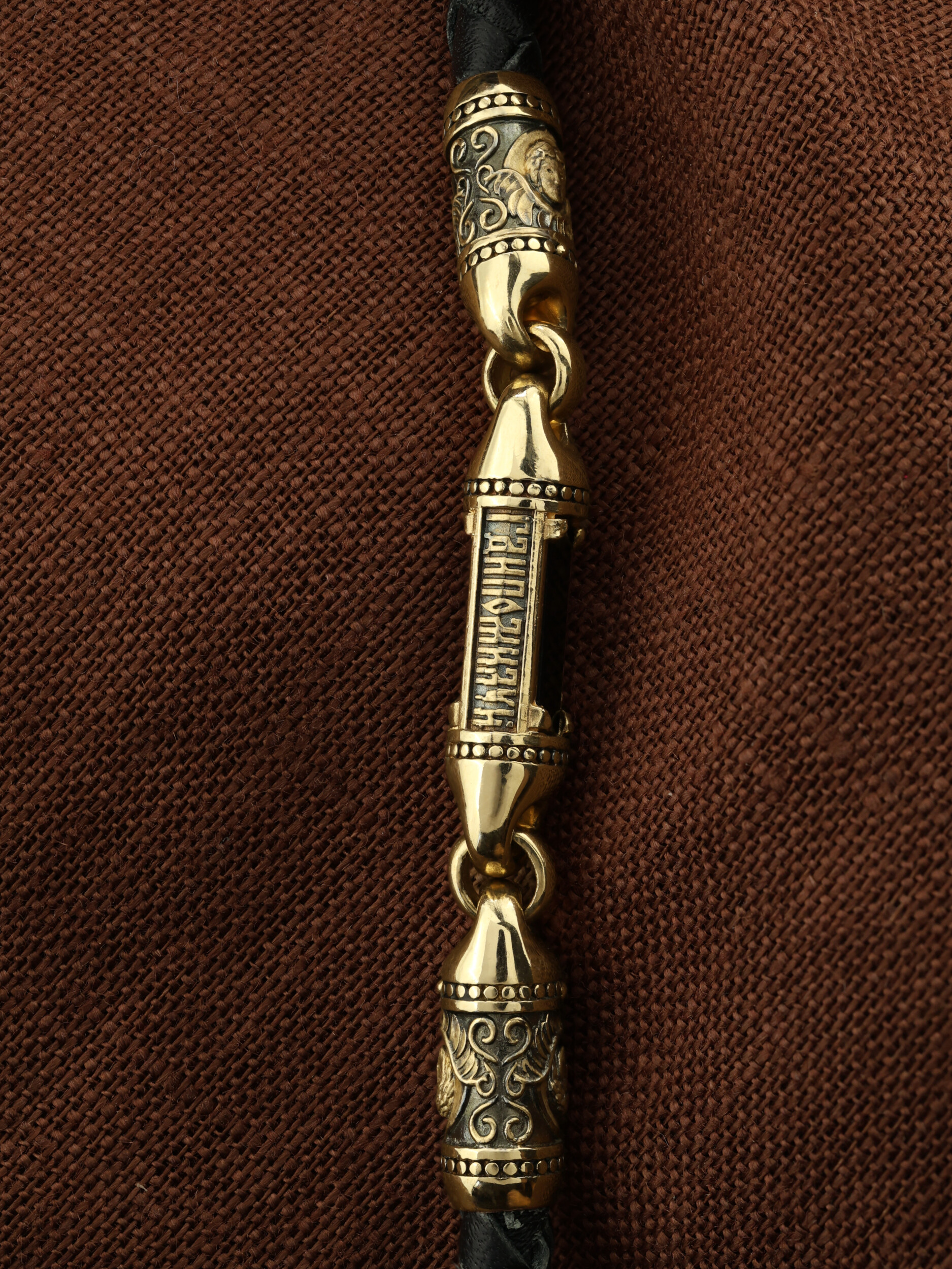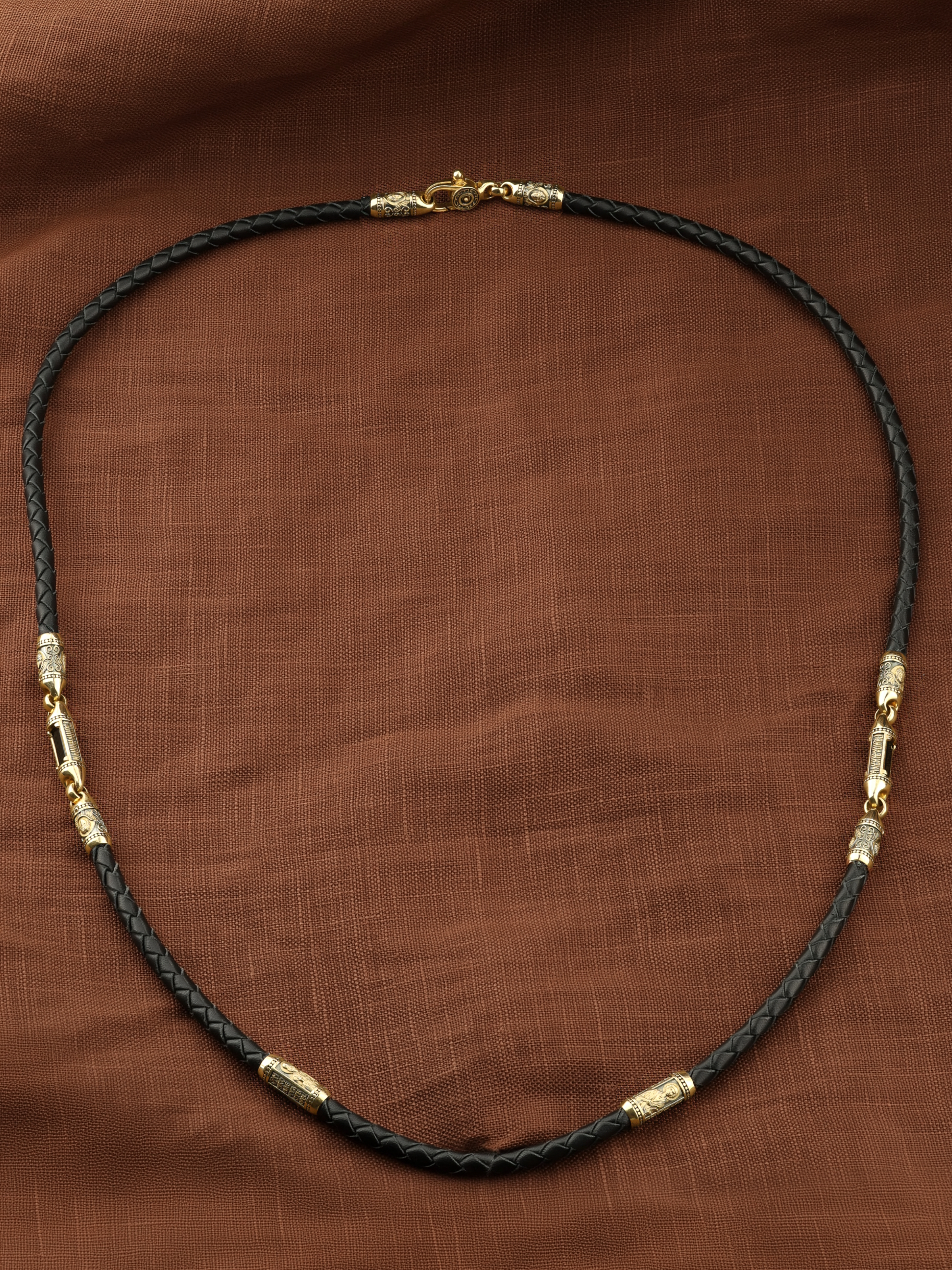 Шнурок кожаный из лимонного золота c кожаным шнурком и ониксом