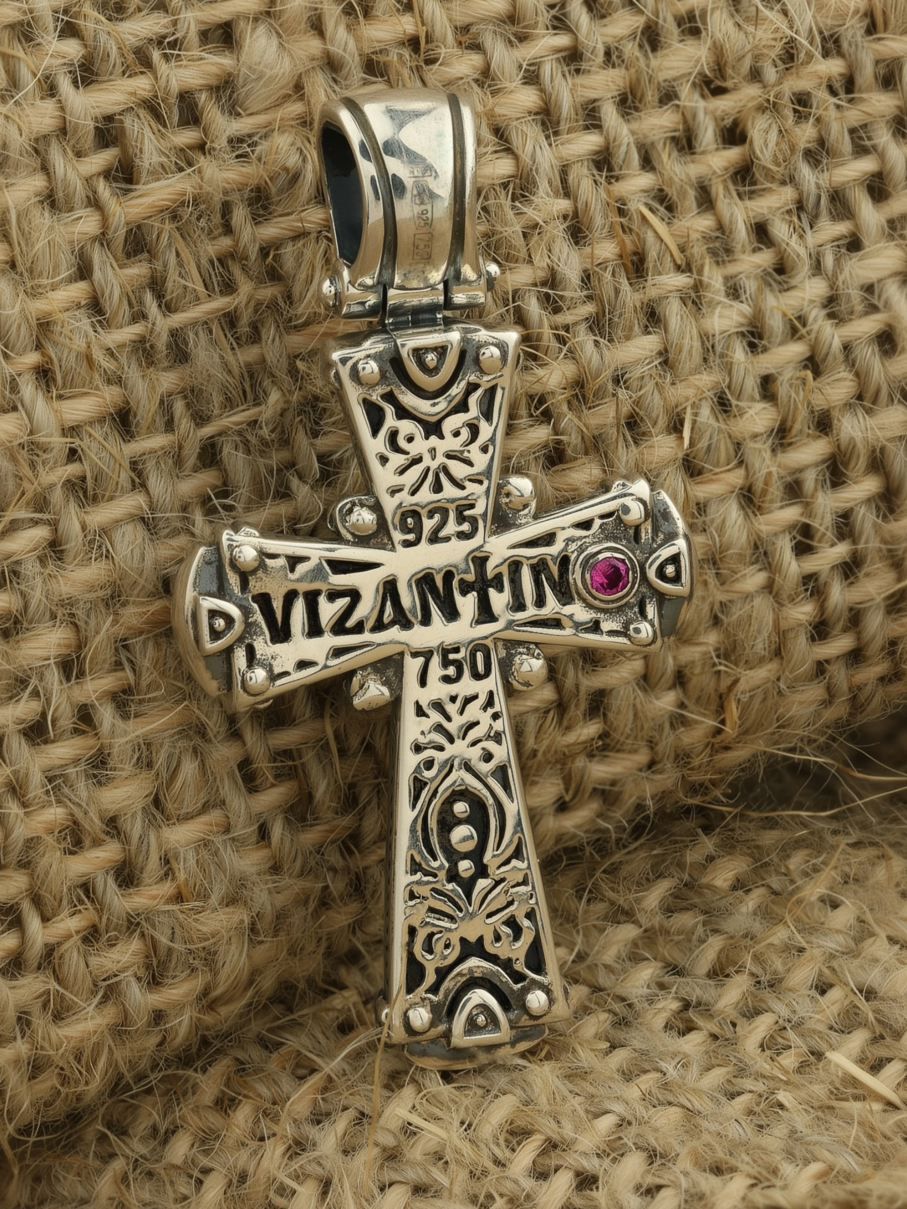 Крест из серебра и золота c ониксом и рубином