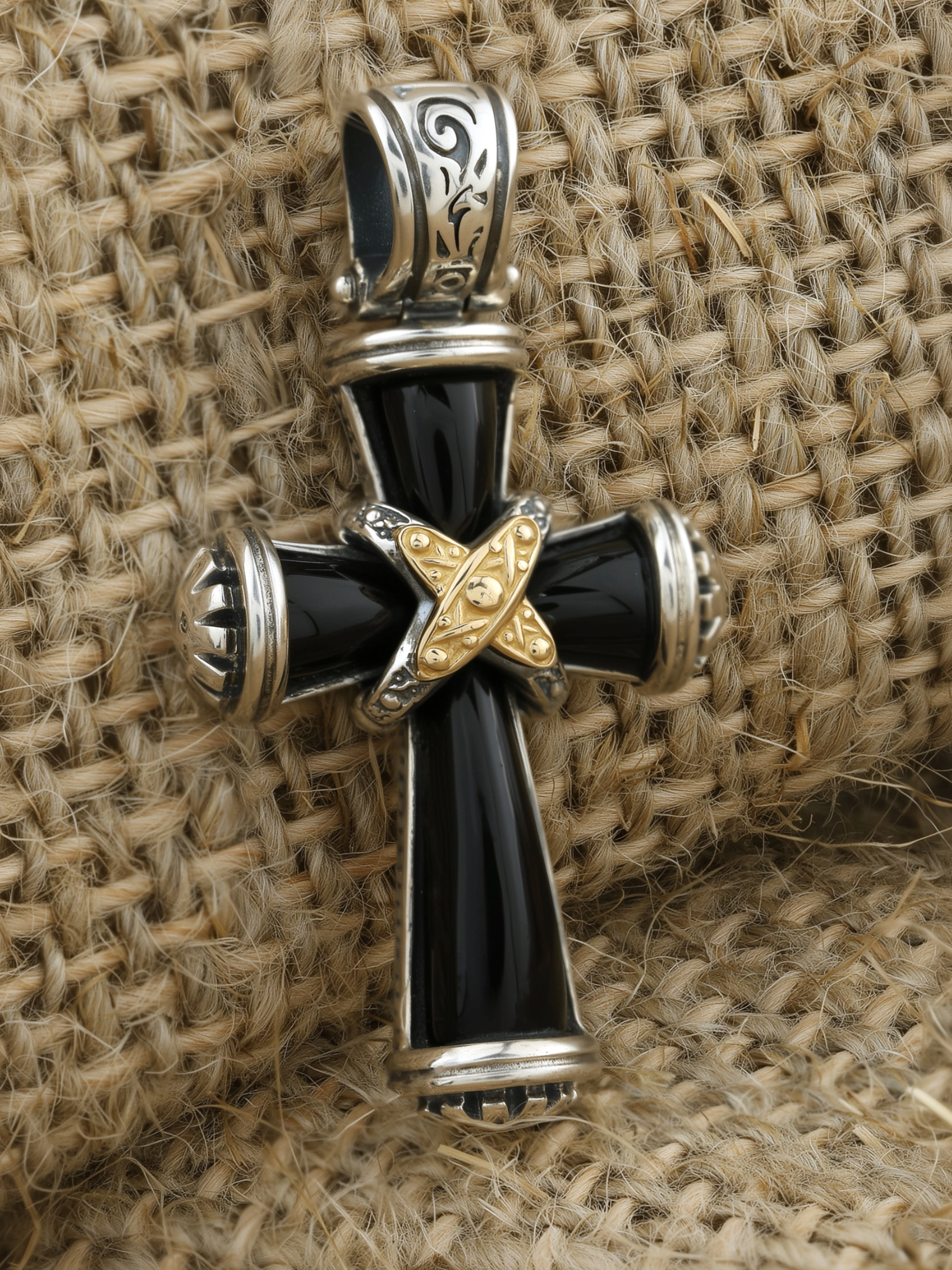 Крест из серебра и золота c ониксом и рубином