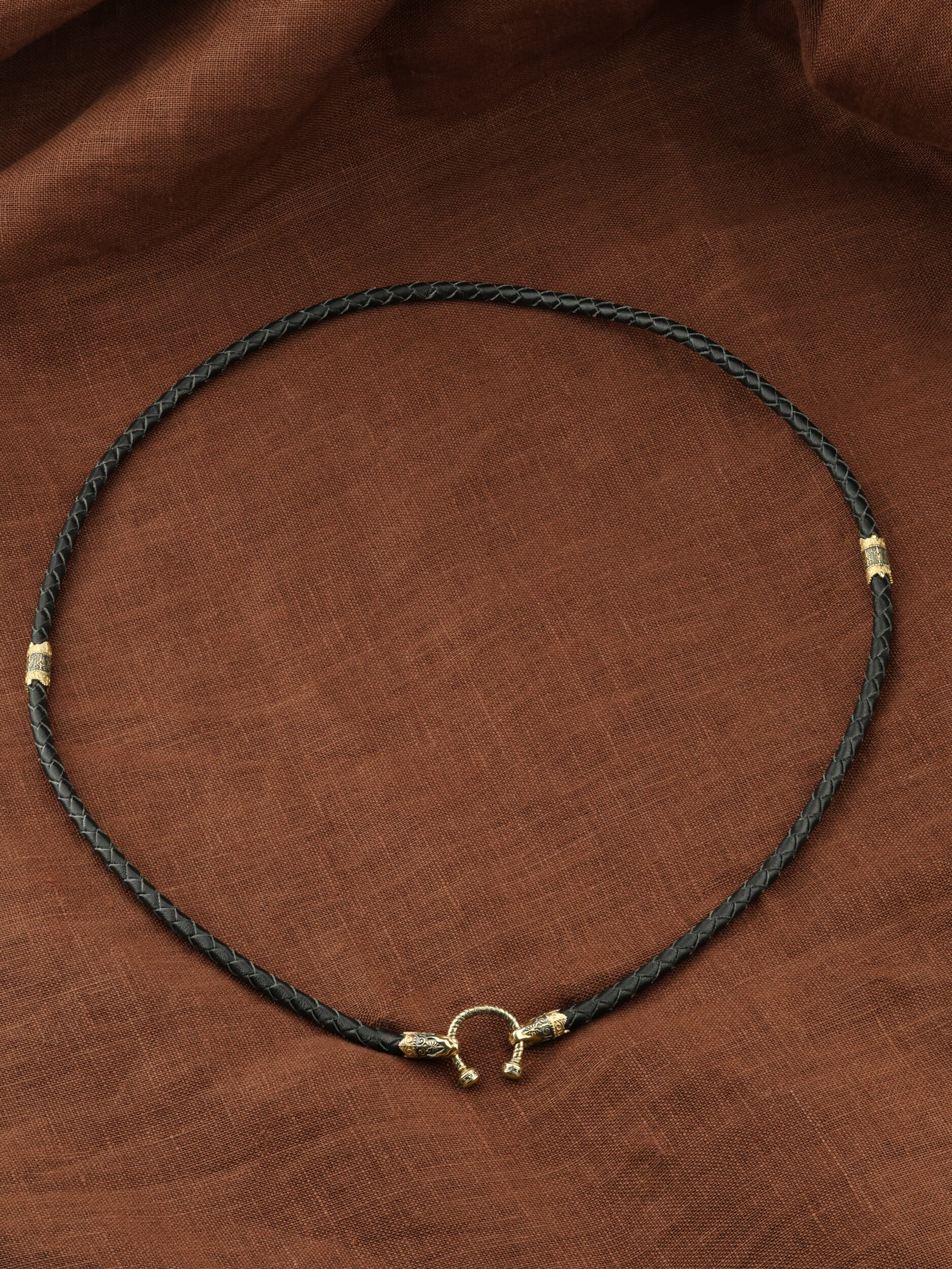 Шнурок кожаный из лимонного золота c кожаным шнурком